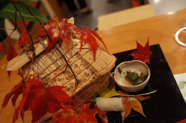 紅葉の季節になりましたお家の中にも秋が潜んでいます日本人で良かったと思います隣の国や、そのまた隣の国に生まれなくて良かった玉子ちゃん大王に生まれて良かった焼きたてのほわふかカステラではありませんが、カステラのようです白髪ネギの下には・・・ここにも鮎が小さいけど子持ちです。唐揚げで全部いただけます。さくさくして、揚げてあるので、子持ちの身のパサつきが補われて美味しいです。松茸の茶碗蒸しって、はじめてかも頂くかもしれません。良い香がほわほわほわ~~~んたまには、トロも旨いでも、おじさんは、ゲソの方が好きかも糖質制限は、この際、忘れて・・・日本酒も飲んじゃいましょう凄いワインも登場ですイイ気分です~~~~おじさんの我儘リクエスト、穴玉胡瓜巻き最後まで「和」で、ほっとします。貸しきりなればこその、寛いだ雰囲気で、好き勝手な事をお喋りできて、楽しいひと時ですご主人、女将さん、ありがとうございました