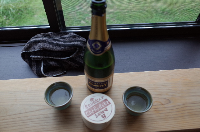今年も、余呉湖健康マラソンに行ってきました昨年と同じ、よしながさんと、Mっちゃんと三人組で参加です。余呉湖14キロマラソンに行って来ました。ご褒美は想古亭げんないですき焼き昨年の話はこっちを見てね今年は、前夜祭付き鮒鮨で有名な徳山鮨さんに宿泊宿に着くなり、夜まで待てず、部屋で、宴会の準備運動余呉湖が見渡せる、素敵な宿です。部屋に内風呂も有りますが、客が順番に入る、信楽焼きの外風呂もあります台風の影響で、お天気は良くなかったですが・・・ここで、晩御飯を頂きますスッポンのゼリー寄せ緑の山椒がアクセント琵琶湖の鰻の蒲焼子持ち鮎の季節ですね。地元のなんとかって茸朝食も、地元で捕れる、鮎や山椒や、山菜などで、地産地消です。派手な演出も無いですが、滋味豊かな、体が浄化されるような料理ばかり 鮎の赤ちゃんのお澄ましです。初めて見ました。シラウオのようです。 三人とも無事完走ただ、おじさん、ここ一年、どの大会も記録が落ちているのが残念能登島マラソンで痛めた右足の膝の痛みは出ませんでしたが、今回は左足の股関節から、太腿の外側、膝へと筋肉の張りと鈍痛が出て、腰が痛くなりました腰が痛くて、両足が上がらなく成ってしまい、最後は、歩いたほうが早いような状態にどこか、姿勢が悪いんでしょうね。でも、走り終われば、コッチのモンです昨年と同じ、想古亭げんないで、打ち上げビールも、シャンパンも、旨いです赤ワインを呑んで、すき焼きをたらふく食って・・・ 来年も、三バカトリオで、走ろうと誓うのでした 前日の土曜日は62.5キロでしたが・・・ マラソンを走った翌日の、今朝の体重は63.0キロ普通は、マラソンしたら痩せるのにね