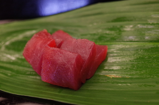 9月30日のお話(なんか、亮さん風だな)28日に、神戸でお魚を沢山食べたんで、さすがに、月曜日に、幸寿司本店の鮎を食べに行く気が起きず、翌日に。鮎が焼けるまで、やっぱり赤身を頂きました。白身もいいけど、鮪の赤身も、絶対捨て難いこの日も赤身は、本鮪の背側の赤身綺麗なルビー色です鰹ほどではないけど、にっちりとした噛み応えと、爽やかな血の香りが好きです。こちらは前回の赤身。比べると、やはり、前回のは、脂が乗っているせいか、透明感が少ないです。肉感的です。前回より小振りになりました。この時期になると、大きな鮎は、下流に流れて行くそうです。今回は、二尾とも雌で、卵を抱えていました。手前をかじった時、身が少し、いつもより、しっとり感が少ないから、雌で卵を持ってるかなと思ったら、やっぱりそうでした。でも、二尾目をかじった時は、いつも通りのしっとり感なんで、こちらは、雄かなと思ったら、同じく雌。あてに成らんバカベロ卵の成熟度の違いなんでしょうか?ここのとろふわ穴子は、どうしても食べたいし・・・スミイカの在る間は、スミイカも外せない・・・でも、これで、もう、お腹いっぱいこれでは、寿司屋さんを、居酒屋使いで、申し訳ないですそうだ、白身を食べてみよう神戸で、折角白身を色々食べたから、続けて白身のお勉強をしましょう。「白身ください。一枚は切り身で、一枚は握ってください。」鯛でないことは判るが・・・・・・糸のような黒い筋が僅かだが見える・・・・・・血合いの色が薄い・・・・・・この時期だし・・・・・・「コチですか?」当たり~~~まぐれに決まってますが、そいでも嬉しい昨日の体重特別節制していないのに、珍しく62キロ丁度なんでだろう~と思ったら・・・今朝はちゃんと、元に戻ってましたでも、コレも、特別大食いした記憶は無いけど、増えてんだよね