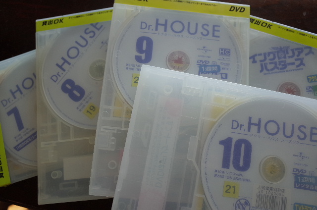 007の最新作を観る前に、予習をしようと、20年ぶりくらいに、レンタルビデオ屋さんに行きました。ビデオでは無いけど、DVDだけど、レンタルビデオ屋さんて言うのは、おじさんだけ?昔は、レンタルビデオ屋さんって、奥の方に、カーテンで仕切ったエロビデオコーナーが在ったよね~アレを借りるのに、勇気(勇気とは違うか?)が居るんだよね今は、もう、ネットで見れるから、誰も借りんだろうなでね、007を三枚借りるだけでは勿体無いので、店内を物色してて見つけた、アメリカの連続テレビドラマ物、ドクターハウス全米でも凄い人気のドラマだったらしいので、借りてみました。そしたら、これが面白いとっても嫌味っぽい男性の医者が主人公なんですが、もう、部下にも、患者にも、酷い悪態をつくんです。バカにするは、差別用語は言うは、最低な男です診断の為には、部下を患者の家に不法侵入させるし、患者に無断でDNA鑑定しちゃうは、訴訟大国のアメリカで有り得ない話なんですが、ただ、腕がイイ誰にも診断できない病気を、手段は選ばず、とにかく答えを見つけ、治してしまうんです。なので、みんな、文句を言いつつ従っちゃう。シーズン1を見終えて、シーズン2を借りてます。完全に嵌ってしまいました(I am intoって言うか、addictedです。雰囲気、伝わってる?)夕食後、普段、ニュースを見るくらいで、テレビもあんまし見なかったのに、暇さえあれば、ソファに寝っころがって見て居ます。ところで、今って、レンタルビデオって安いんですね旧作なら、一枚100円です。しかも、おじさんが借りに行ってるレンタル屋さんは、60歳以上は、火曜日に借りると半額なんです有りですか?こんな金額。一枚50円ですよ5枚を、一週間借りて250円老人に成って良かった~~~年金生活に成っても、毎週火曜日は、レンタルをしようと思います。一人ぼっちに成っても、レンタル屋さんが在れば、寂しくないぞ