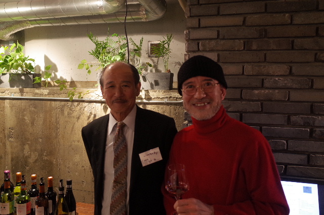 左の紳士は、金井麻紀子さんのお父さん。ワインに興味の無い人は「どなた?」って話しですよね。木曜日の、八百津のCave渡辺屋さんが、名古屋で開催したワインの試飲会でお会いしました。話すと長いんですが、おじさんの好きなワインに、ジャッキー・トルッショーさんが在ります。そのトルッショーさんのワインを日本に紹介した金井麻紀子さんのお父さんなんです。詳しい事は、2007年の日記ジャッキー・トルッショーを求めて三千里 | 名古屋B食倶楽部 ...を読んで下さい。2007年に、「かない屋」さんにお電話をして、八百津の渡辺さんを紹介していただき、トルッショーを手に入れる事が出来、以来、渡辺さん所とお付合いが始まりました。なので、おじさんとトルッショーを繋いでくれた根っこの方なんです。感激して、ミーハー的に、写真をご一緒して頂きました試飲会の会場は、WINE9と言うお店です。今回は食事を食べていませんので、次回、チャンスが在ったら行きたいと思います熟成肉を薪で焼いているそうです真ん中の若者は、Cave渡辺屋さんの跡取りさん、好青年です。ワインが取り持つ「縁」、大事にしたいと思います。