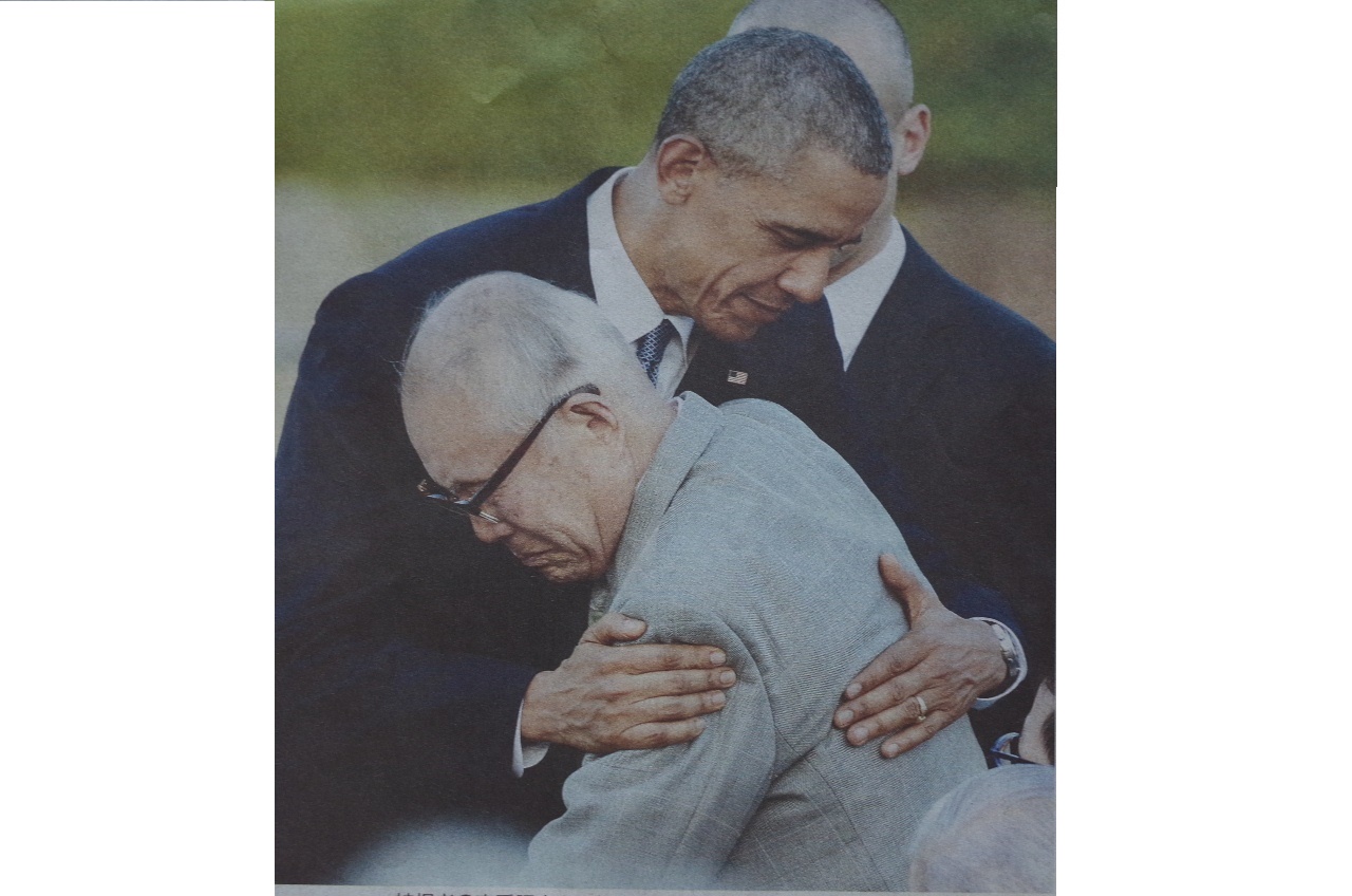 難しいことは、アホなおじさんには判らんが、純粋に素敵な写真だと思えた日本人で良かった。韓国に原爆が落ちたら、大使館の前に、きのこ雲の像が立てられただろうし、中国に落ちたら、4000年は攻撃材料になるだろうな。いろいろ意見は有るでしょうけど、これも、日本人のやさしさかもしれん。おじさん、恥ずかしながら、この 森重昭氏の偉業を全く知りませんでした。関心が無い、無知って卑怯だね、反省広島被爆米兵の名前を刻んだ日本の歴史家 今日はチャリティーです。頑張る5月29日は、第14回東日本大震災チャリティ『ナゴヤゲンキチャージ』ですよ~~~♪