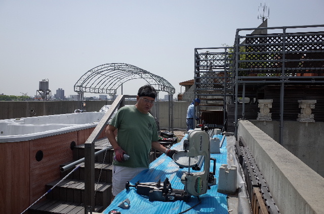昨日2日は、良いお天気でした午前中の仕事が終わり、腹ペコ歯医者さんと、一緒にお昼ご飯が食べられないかと電話したら、サクラダファミリアの工事中とのこと金山駅の成城石井で、はんぺんと、メンチカツと卵焼きを買って、腹ペコ邸へ作業中の腹ペコさん、なんかカッコイイです奥のプロっぽい人は、ルパン君お父さん。強い日差しの中、もくもくと、ルパン君お父さんの指示に従い、いろいろな長さに、パイプを切断しては研磨して、さび止めをスプレーしてます。なんか、健康そうでイイナ~~~~アンカーボルトを、一本わざと斜めに打ち込んであるのが、プロの技だねおじさんは、そんな二人の邪魔をしながら、奥様が用意してくれたシャンパンを飲みながら、成城石井で買ったお昼ご飯を食べて帰ってきました~~~