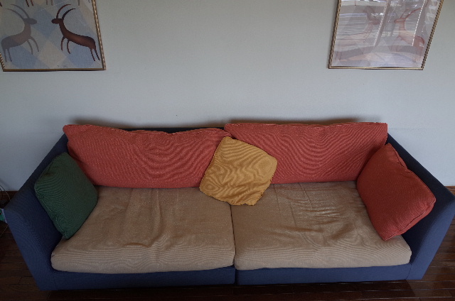昨日、土曜日、やっと注文通りの生地と色で、おじさん家のソファが帰って来ました5月のGW前に、Aソファの張り替えに、ベースを持って行きました。から、6月3日のAソファ来たのに、色も生地も違うじゃん!!(涙)と成り、結局、約二か月かかって、ソファが帰って来た長かったな~~~これが・・・こうなって・・・全く頼んだものと違う生地と色でこうなって・・・ただ、慣れちゃうと、無難な配色ですから、馴染んじゃうんですよね、コレがでも、これでは、元気が出ない年寄り二人が、こんな辛気臭い配色のソファに座っていては死んでても気づかれんジャジャ~~~ン!!そこの貴方、今、「ゲッ」って思ったでしょ?還暦の赤です年寄りが「赤」使って何が悪い?固定観念に捕らわれてはダメですリビングで唯一のVIVIDな赤、これで元気を貰うんだ
