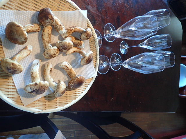 同業のIさんが、突然やって来て、なんとビックリ松茸をどっさりくれましたなんでくれたんだろうと、思いながら・・・ありがとうございますそして、奇遇と言うか、縁というか、友人Sが、朝日屋の松坂牛を貰ったとそれは、もう、やることは一つ松茸すき焼きだ~~~~~どうだ、まいったか、ふんふん鼻の孔広げて、凄いことをおじさん、しちゃうぞ貧乏人の方たちは、しめじすき焼きでもしてなさい松茸様には、おシャンパンをご用意しなくては友人S夫妻が来るまでに、炭を起こして、米茄子を焼こう松茸様を見ながら、食事開始友人Sが盛岡で買って来たホヤを三杯酢で。大人の味やね。トマトと水ナスとモッツァレラを切って、オリーブオイルと、醤油パウダーを振りかけただけの手抜き料理焼き松様醤油を一滴と、スダチを絞って頂きます。ザクザクとした歯応えと、アノ香りそして、メインイベントの松すきです。肉の下は、一面松茸です入って居るのは、松様と牛様のみ贅沢の極みですピンク色の牛肉で、たっぷり松茸を巻き込んで、玉子にくぐらしてもぐもぐ・・・牛肉が旨いな~~~~割り下使ったら、松茸の香りは判らんですザクザクしょくしょくの、気持ち良い歯応えだけだねいいんです、それでも。こんな贅沢はしたこと無いんですからやってみんと判らんことが有る。あとは、ネギと牛肉で。〆はもちろん、松茸ご飯ですおじさん的には、これが一番旨かったようなすき焼きは、しめじすき焼きで充分なような気がしましたまっ、性分が性分だかんね