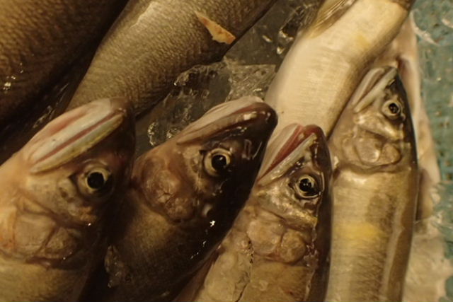 もう、備忘録ですから、皆さん、パスしていただいても・・・台風の合間を縫っての釣果が大漁なのが、名人の証だね。ゲソの煮イカを食べながら、鮎の焼けるのを待ちます。デカ~~~~~い24センチの箸の長さを超えています写真で見るより、相当太くて大きいです太っ腹が張ちけそうです。手で持つと、ずっしりと重量感を感じます。ええ顔してますいつも両手で熱いのを我慢して持つんですが、今回の鮎は大きくて、内に秘める熱量が多いので、熱すぎて、両手で持ち続けられない。それでも、だましだまし、指を持ち替え、場所を変えて、あふあふはぐっと、首根っこからかじりついて、一気にむしゃむしゃと食うむせるような鮎の蒸気の中に、野生の命が拡散しながら、おじさんのベロと、鼻腔の細胞に染み入っていくのだ小さな粒粒の卵が美味いしっとり柔らかく旨い。これくらいの未熟な卵が美味いんだね鮎の卵で、焼けすぎた大きなタラコのような粒粒感は好きではないんです。二匹食べたら、本当にお腹がいっぱいになったしかし、これだけで、ご馳走様でしたとは、さすがに言いにくい・・・いつものように赤身の勉強をして・・・今回も、ニュージーランドのインドもん。なんとなく、判るぞえ~~~、折角おまけで、地豆のうでたのをくれたが、今日は食べるのが辛いコハダを一貫と・・・穴子を一貫の、握りは二貫食べたら、腹が爆発いつもは、海苔巻きで〆るんですが、とても食べられない、もう無理です連休は鮎釣りに行かないとの事、次回は17日ですが、そろそろ最後の鮎になるかな?