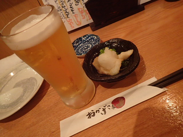 大人の遠足の下調べにランチに行った、おもてなし「ふく井」そん時の話はコレね三河安城駅近くの、おもてなしのふく井で天丼ランチ使えそうなんで、夜の偵察に行ってきましたなかなかの日本酒が揃っています佐渡島の北雪、強烈なお酒ですが、興味あります当日に予約して、ちょうど、ひとテーブル空いていました。泡は、シャンパンとカバの二種類ありました。お通しが、鉄火巻きって珍しい奥さんが、豚しゃぶサラダを注文。ニンニクチップがアクセント、豚肉はパサつかず柔らかく美味しい。コチの天婦羅。ランチの時より、ちょっと衣がべたつきます。新秋刀魚、イイですね~~~イカ天、これも、衣がべたつくな~~~天婦羅は、お値段の割に、盛り付けを含め、割高感があります。夜は、女将さんがいらして、お酒に詳しそうです。若いお姉さんも二人いて、小さなお店ですが、スタッフの数が多いのは、それだけ繁盛しているってことですね。そうそう和風ラーメンもありましたよ隣の洋食屋さんも偵察した方が良いかな~~~