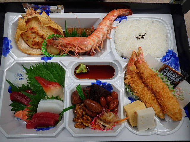 豪華な3000円のお弁当月に一回の、東京から先生をお呼びしての勉強会で頂きます豪華な弁当でやる気が出ますエビフライが二尾入って居るのが素晴らしいと思う。一尾より、うんと贅沢に感じちゃう弁当屋さんも、ふんふん鼻の穴膨らまして、盛り付けてると思う。尻尾が容器からはみ出てるのがニクイね。何気に、「大きい海老、入れてますから。」ってメッセージだね。おじさんには充分伝わったよお刺身は、赤身が何故か二種類入って居るけど、赤身好きなおじさんに文句はない出来ればサーモンは止めて欲しいなおじさん、サーモンのにゃらにゃらした食感と匂いが苦手真っ赤な、北寄みたいな貝は何でしょう?椎茸の煮たのや、タラコの煮たの好きです。甘い豆って、オカズ?お茶の御供?問題は、この尾頭付きの海老さん。これも容器からはみ出る立派な海老で、気持ちは判るけど、お弁当のつべたい海老は止めて欲しい。貧相に成るけど、頭と殻を剥いてくれるなら入れて貰ってかまわんけど、ゆっくり酒でも飲みながら食べる訳ではないし、忙しいとは言わんけど、指が汚れるし手間じゃんね。どうせ食べられん頭は無駄だしさ食べ終わった、蓋がしてある弁当箱を、積み上げて片づけてる時に、意外とどさっと荷崩れして、頭が弁当箱からこぼれるっ事ってない?おじさんはある剥いた海老の足が一本とか二本、散らかったりとか、醤油もこぼれちゃってさ。蓋のあいさから、海老のヒゲがピロ~ンとはみ出てるのも気に成るし。やいやいってなる。蟹の甲羅グラタンも・・・まあいっか、止めときます。折角のお弁当がね