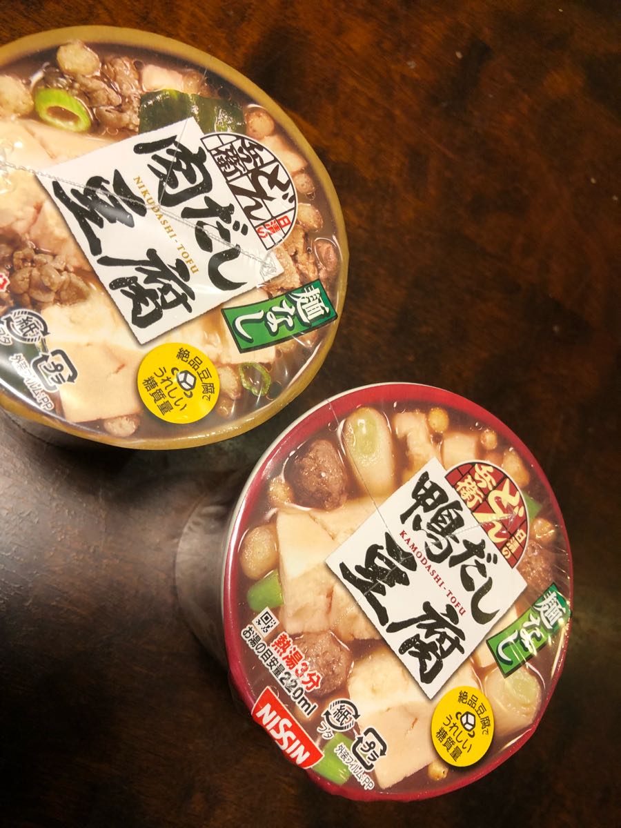 コンビニに行ったら、こげなもんが在った。日清のどん兵衛 麺なし 肉だし豆腐同じく、鴨だし豆腐「絶品豆腐で、嬉しい糖質量」って謳い文句は、糖質制限狙いの商品ですね。確かに、糖質が5~6グラムと、きっと、うどんの十分の一くらいの糖質です。しかし・・・しかし、具を袋から出して、お湯をかけてみましたが、これでは・・・地殻変動に見舞われた大地は、太平洋に新しい大陸を形成し、天かすと、わかめがまだ、箸をつけて無いのに、すでに食べかすの様相を呈しています。三分後、陸地は海底に没し、天かすとネギが夢の後・・・何度も箸でカップの底をさらうと、やっと一切れ見つかった肉片は、まるでわら半紙のよう。一番最初の写真は、一体、誰の写真だ?今朝の体重 64.7キロ