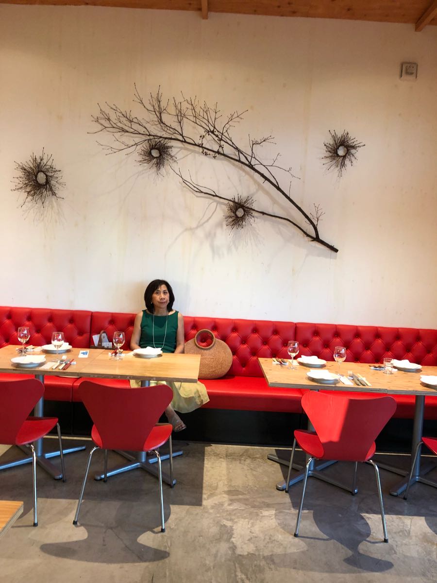 白い壁に真っ赤なソファー、偶然のグリーンが綺麗なコントラスト。こんなオシャレなレストランが、日進の田んぼの中に在ります。農園レストラン サバーヴィアンです。おじさんた~夫婦を、毎年、桑名の日の出さんに誘ってくれるmadamKさんがトップシェフをしているレストランです。名前の通り、農園のとれたて野菜を使ったレストラン。Kさんから、レストランのイベントに誘われてやってきました。チケットの飲み物では足りないおじさんたちは、別料金で泡をがぶがぶ野菜はシャキシャキ、良い香り。おじさんのためではなく、お子さんたちも参加してるので、玉子は必須ですね。大人たちにはハンバーグ、子供たちはミートボール三兄弟これ、何してるかって言うと、流しそうめんならぬ、流しカッペリーニちゃんと竹で水路が出来てます。そこにカッペリーニを流して・・・トマトのお汁で頂きます。こういうお遊び、楽しいです。おじさんは、ハンバーグを使って・・・豪華なハンバーガーを作ります。ハンバーグの中がほんのりピンク色なのが嬉しい。肉肉しくて旨いです。〆は、かき氷自家製ほうじ茶シロップに、白花豆?のアンコ。さっぱりした甘さで美味しいです。九月中はかき氷をやっているって聞いたから、スタッフとかき氷を食べに来ようかな。