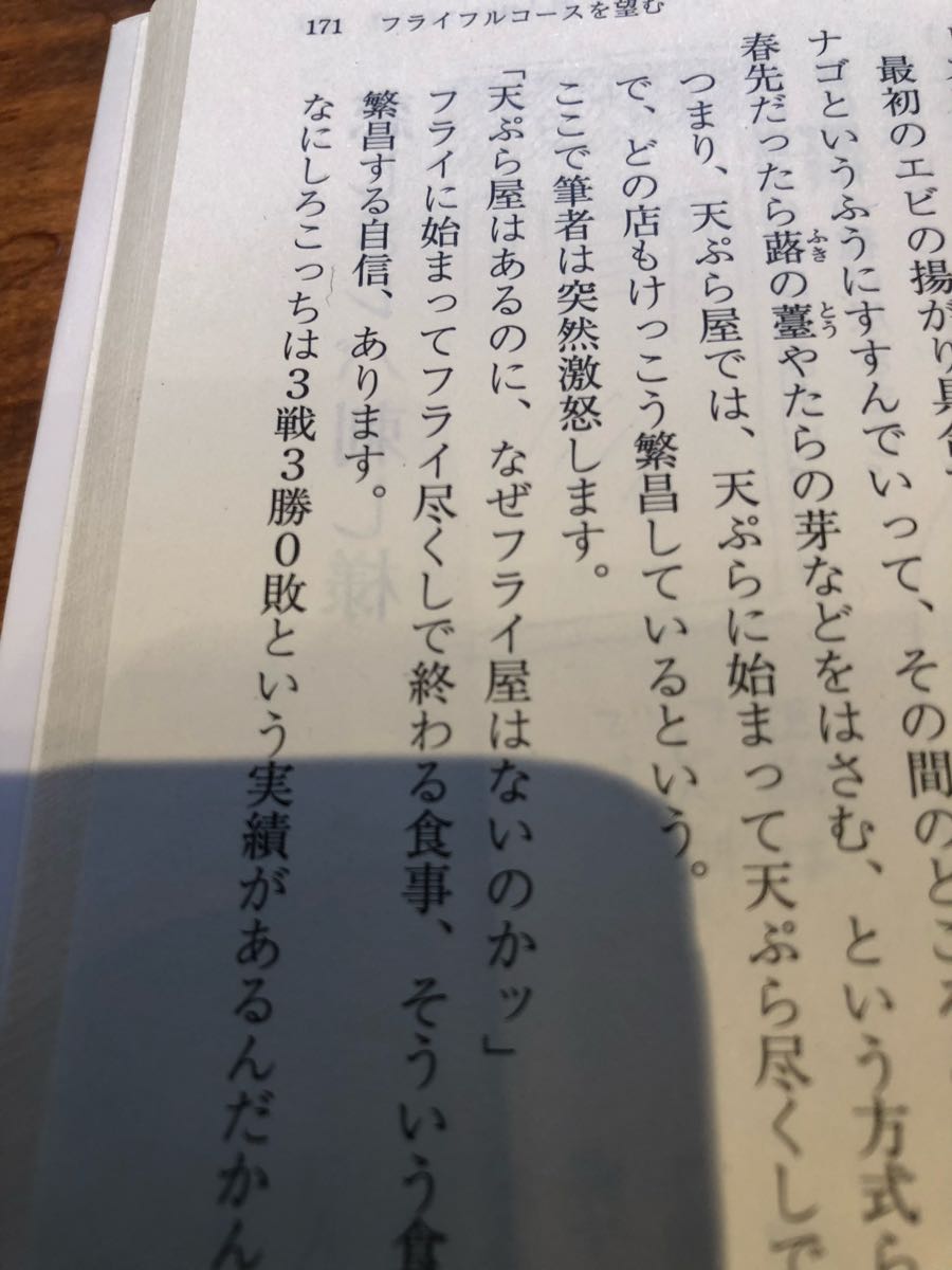 日曜日、午前中仕事。昼から、奥さんは、お孫ちゃんと、日舞を見に名古屋へ。おじさんは、日舞見ても腹は膨れんし、一人ジムへ。時間があるので、ゆっくり1時間ストレッチをして、時速7キロで12キロのウオーキング。お昼ごはんが、チクワ二本だったんで、さすがにエネルギー切れなのか、最近、練習不足で体力不足か、最後は歩くのがつらかったです。午後六時に、家族と大須で晩御飯を食べるために、金山から大須まで歩きました。ぶらぶら歩いて、どこぞで一杯の算段でしたが、日曜日、居酒屋、一杯飲み屋、大衆食堂が開いていません。大須の中を歩き回って、やっと見つけたのは、オサレなカフェ。ビール有りますかと聞いて入店。おじさんは、こういうお店は、普通なら、恥ずかしくて入らんです。でも、もう歩き疲れて、そんなことも言っとれん状態。この時点で5000歩超えてた。12キロの後の5000歩は疲れます。ハートランドビールが在ったんで。晩御飯前だし、ビールが糖質だから、おつまみは、チーズのオイル漬け。く~~~,もちぇ~~~んジムの後の脱水状態、砂漠に水です。きゅい~~~~~と毛穴がちじこまりもうした。チーズのオイル漬けって、おじさん、ハーブとか、ニンニクとか、唐辛子なんかと漬けてあるもんだと勝手に想像しとったけど、呆気ないほどの、オイルをかけただけみたいなのでした。失礼ながら、ビールを飲みながら、東海林先生のご著書を拝読中。「天ぷら屋が在って、なぜフライ屋がないのかッ」御意でござりまする。フライで始まり、フライ尽くしで終わる食事。よし先生のお陰で、晩御飯が決まりました今朝の体重 63.4キロ・・・変わらん