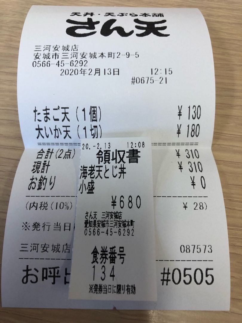発行時間を見てください!!ランチタイムの真っただ中に、タッチパネルを冷静に使いこなして注文出来ました。何故か?込みすぎで、おじさんの前に待ってる客が沢山いて、しっかり操作方法を学習できたから。垂れ幕の写真を見て、上海老天丼単品か、海老天とじ丼まで絞り込んで・・・上海老天丼の種の方が良いような気がしながらも、やはり玉子とじってところが、おじさんには高得点かな。相席テーブルを指示されて着席。お冷じゃなくて、お茶が欲しくて、どこに在るのか判らず、ちょっとまごつく。それでも、着丼前に「お友達」に挑戦する余裕もあったぞ。ちゃんとポイントも獲得できた。やれば出来るじゃん、おじさん。丼も、味噌汁もちんちんです!!ものすっごいちんちん。火傷しそうです。これは素晴らしいな~おじさんには、少し甘い天ダレですが、たふたふにタレを吸った衣をご飯に混ぜれば、それだけでご飯が完食できそうです。大イカ天と半熟玉子の天ぷらを、テーブルに着いてから追加注文する余裕もあった。出来たことが、なんか、常連みたいで、鼻の穴が広がるくらい嬉しい。海苔の味噌汁、これ、家でも、お歳暮で残ってる海苔を使ってやってみよう。凄く混んでて、今まで敬遠してたけど、タッチパネルを使いこなせることが判ったし、すごく回転が速いから、気になるほど待たないで食べられるし、これから通いそうな気がします。本当は、北京本店に行ったら、お店の外の階段迄客が並んでたんで、こちらに来たんですが、結果オーライでした。