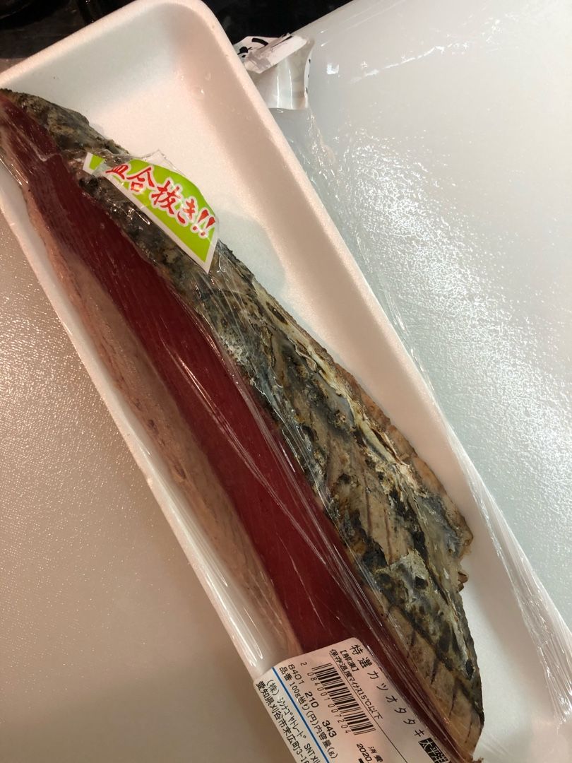 解凍もんですが、美味しそうな鰹が売っていたんで購入。血合い抜きに成っています。冷凍戻しは、血合い部分が難しいからね、これは良いと思います。おじさん、丁寧に扱われた新鮮なもので放血されてれば、血合いも気になりません。ただ、冷べたい鰹のたたきは好きじゃない。鰹って、食べる時、一切れを大きく切って、鮪より体積が大きいじゃないですか。より冷べたく感じます。それに、皮の下の脂肪が溶けてた方が美味しい気がするじゃんね。温めなおして、ポン酢をかけてぺたぺた叩いて身に染み込ませる。だから「たたき」?生姜醤油は勿論、ニンニクも良いし・・・マヨネーズと和芥子もお薦めです。久しぶりにナルトを見ました。で、赤ワイン!!渡辺酒店の二代目が選んでくれた安うまワイン。これが鰹に合うの。和食のおかずに合う。勿論冷酒もね。おじさんは、炭酸で割ったジャパン米ボールコレも、両刀使いって言うのかな?