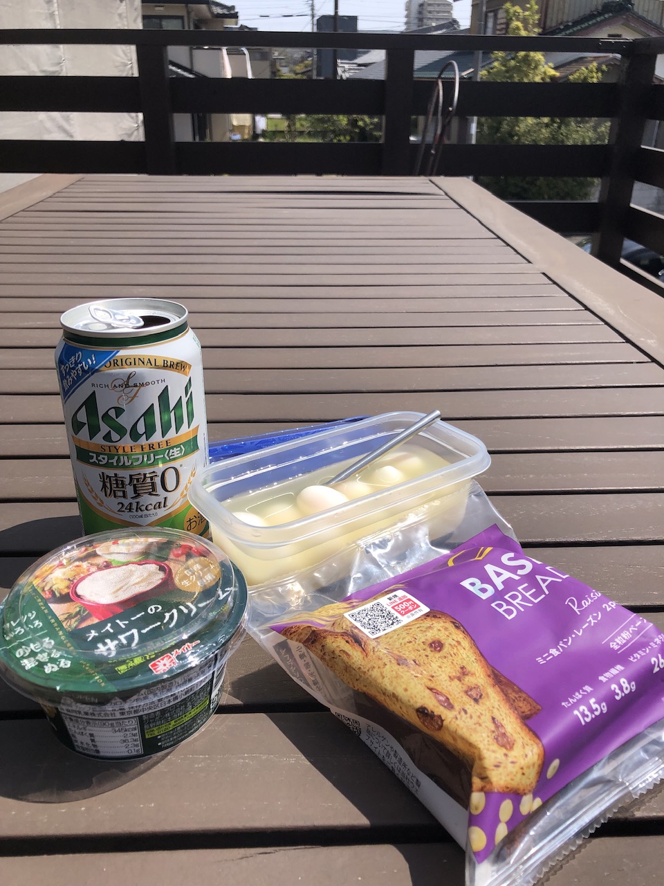 昨日、午前中の仕事がどえらい忙しくてくたびれちゃいました。外に食べに行く気がしんくて、なんか、お日さんに当たったら元気が出そうな気がしてデッキで食べる事に。食べるっても、なんも作る気力が無いので冷蔵庫にあるもんで。こんな日もあるよねー万博、行きますか?