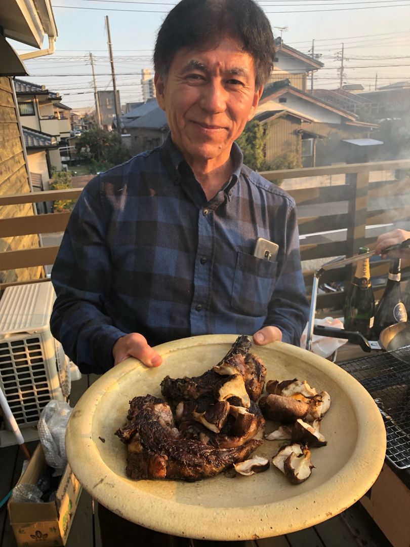 BBQの得意なシフォンの王様に焼いてもらった、1キロの鹿角短角牛のTボーンステーキ