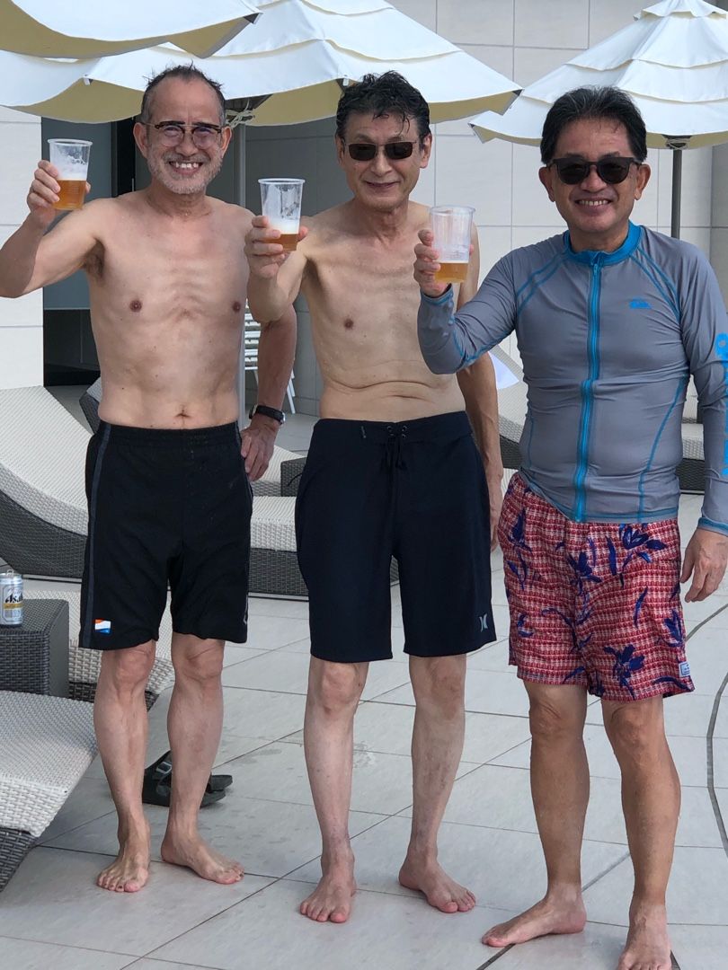 おじい3ズ、みんな情けない体型で笑えます