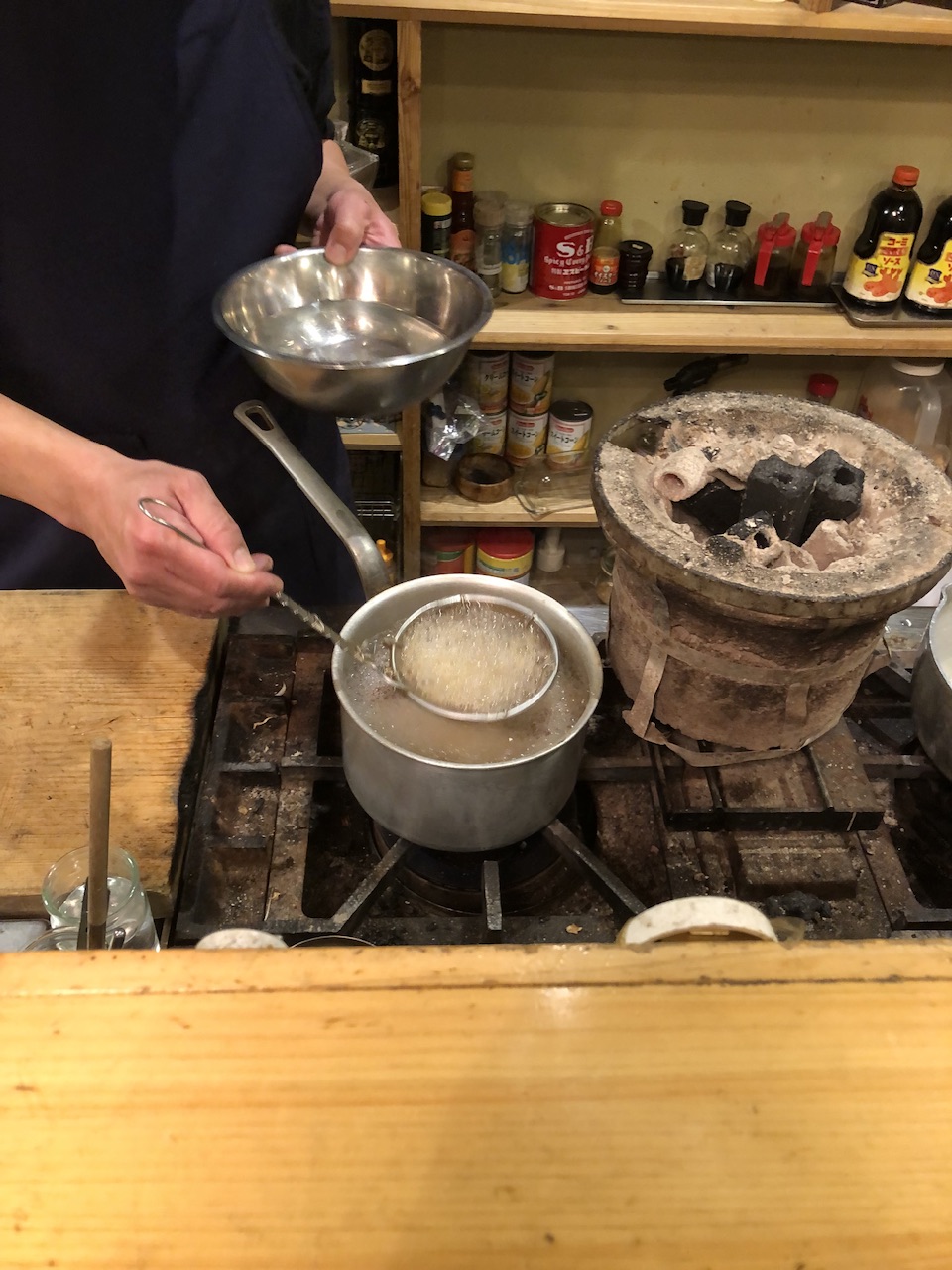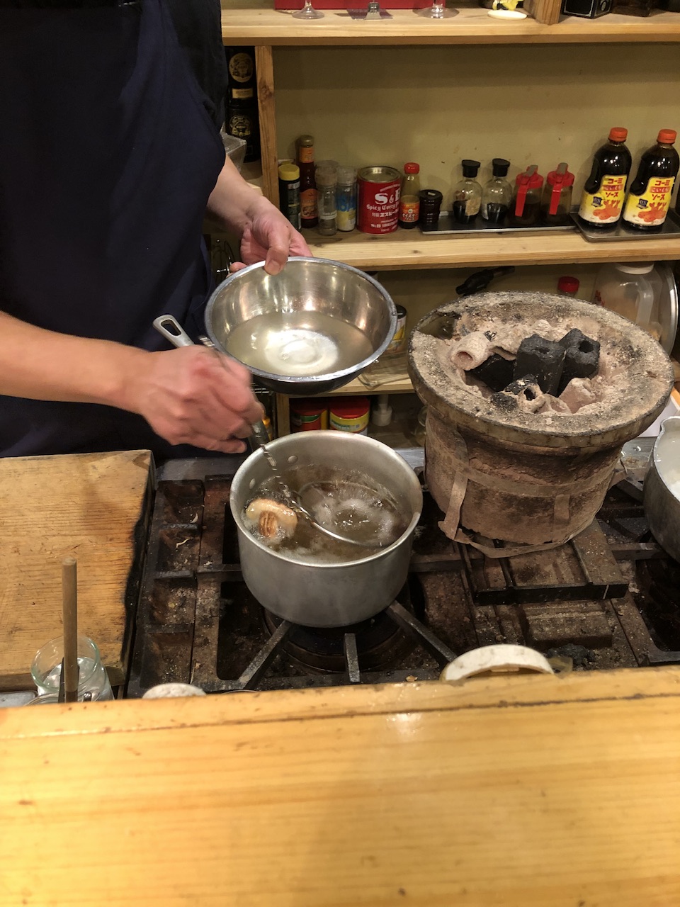 でも、おじさんが気になったんは、左に乾し椎茸を戻した鍋があるでしょ、何するのかな~って見ていたら・・・