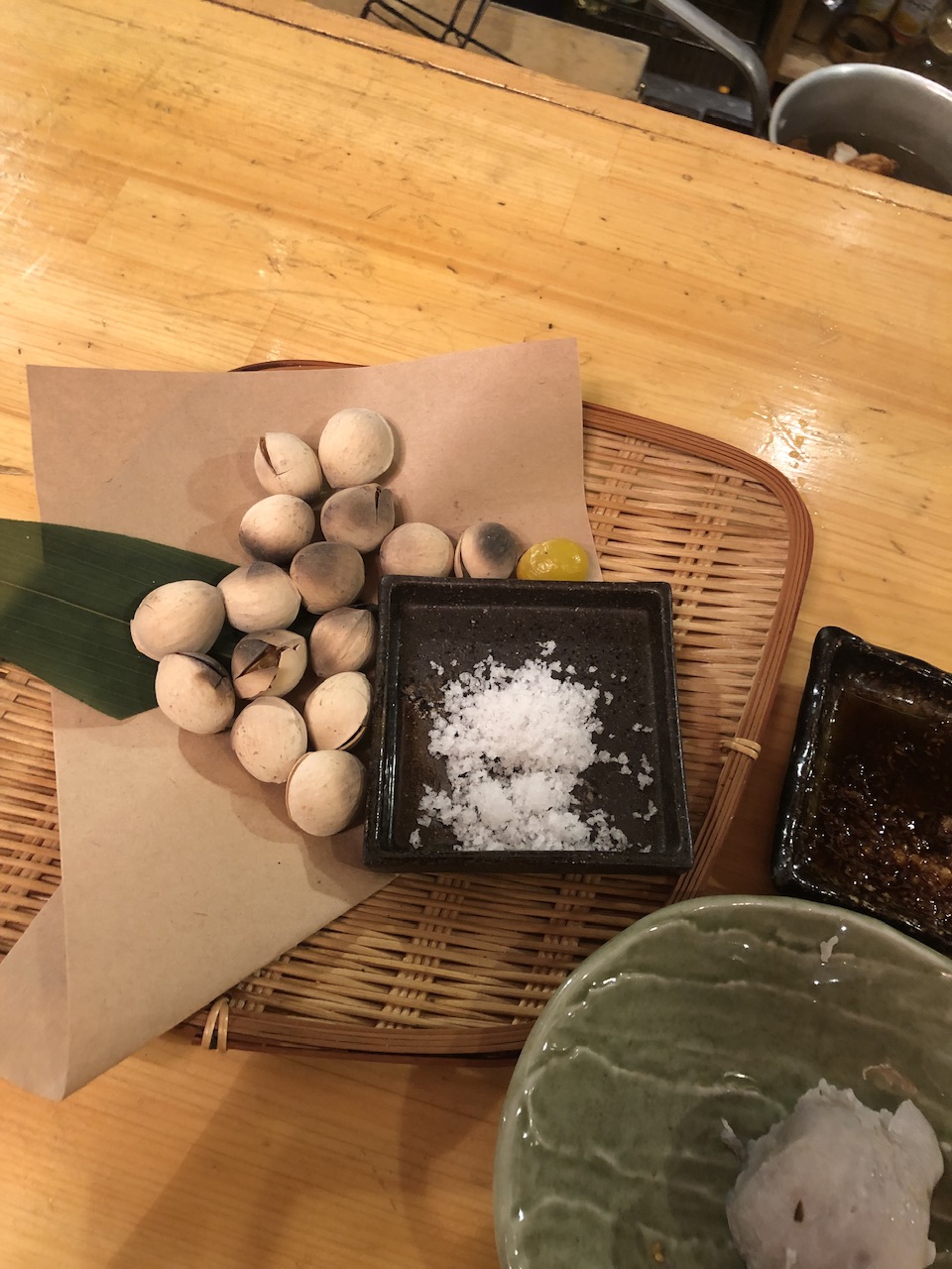 ギンナンを頼んだら炭火で焼き始めてくれました。