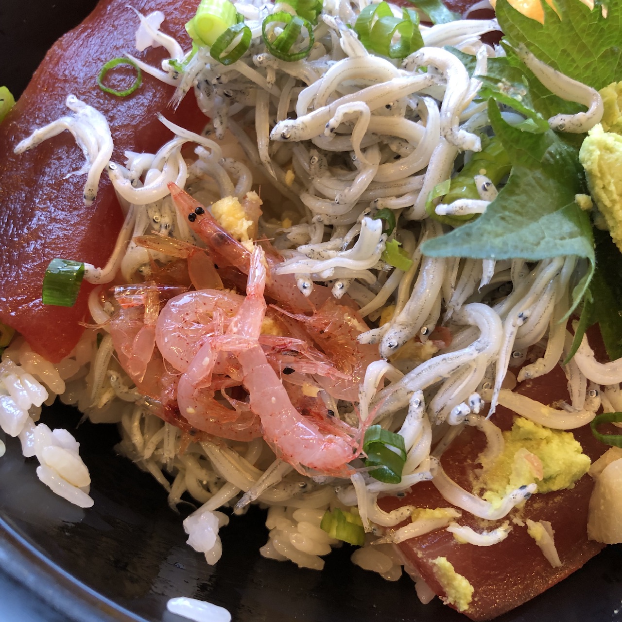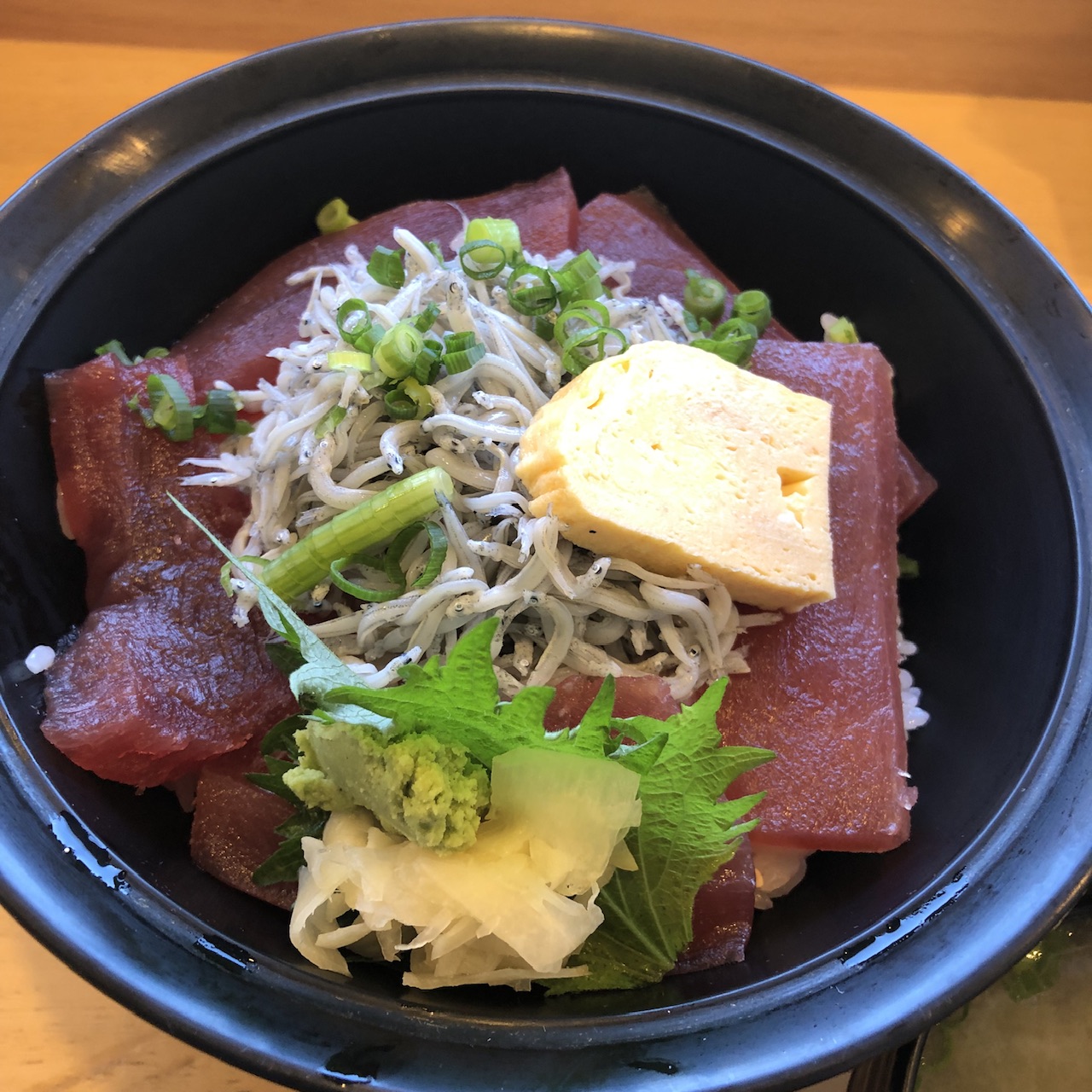 無いもんは何ともならんし、昼飯抜きでここまで来て、何も喰わんと帰る訳にもいかず、マグロと釜揚げシラスの二色丼を注文。
