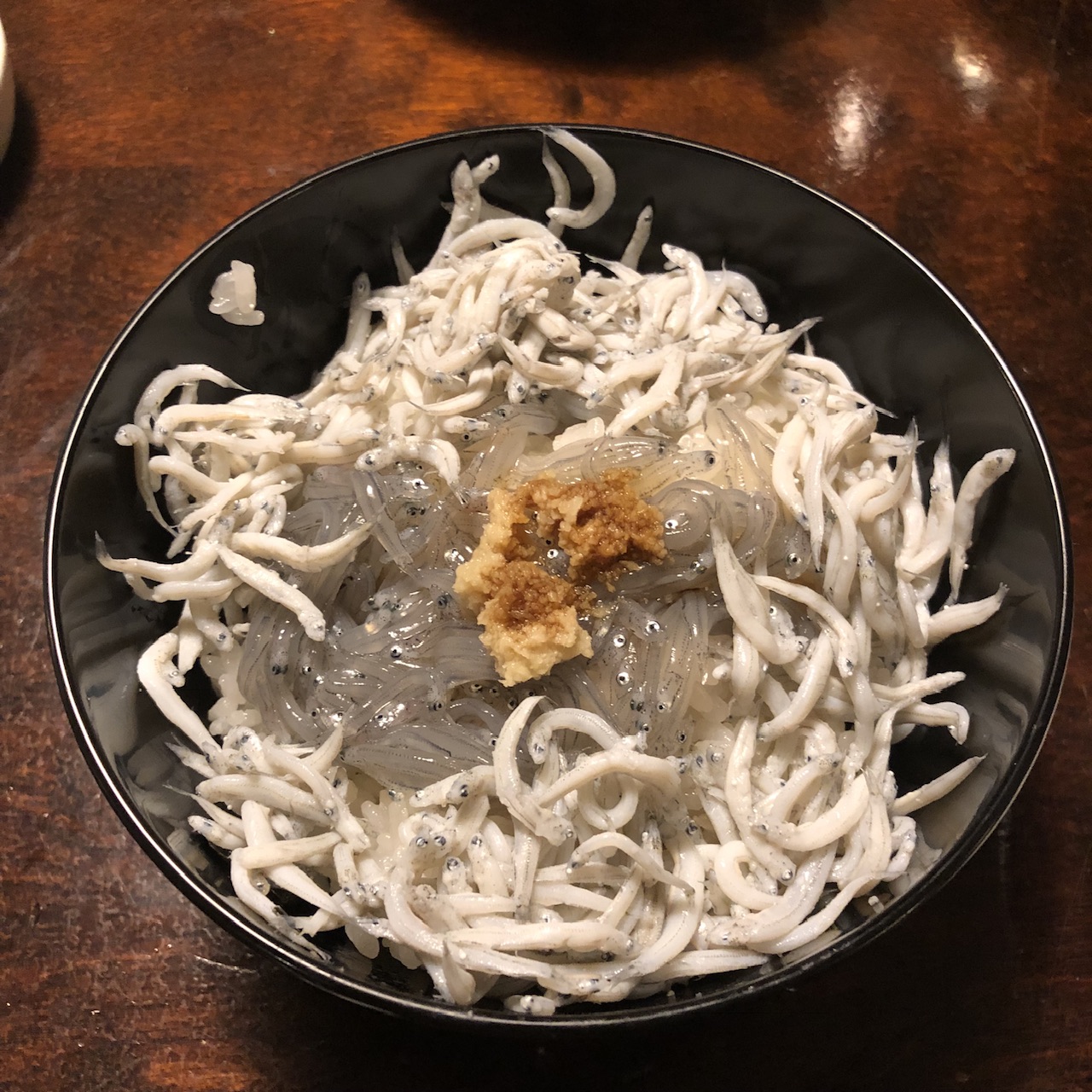 生桜えびを一緒に食べると、鯨に成った気分を味わえる(笑)