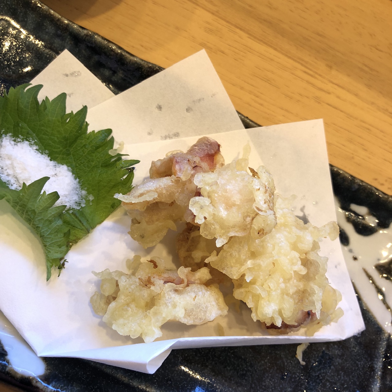 ところが、出て来た蛸を見たら、ぺらっペらのタコの天ぷら!!