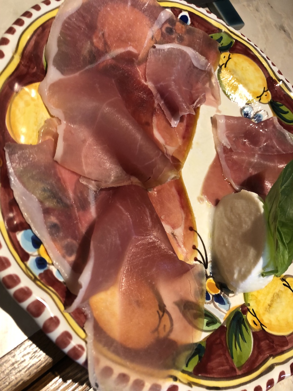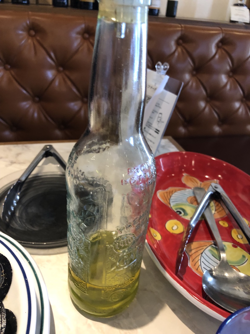 生ハムにオリーブオイルがちょびっとしか、かかってなくて、オリーブオイルくださいっと頼んだら、ボトルごと持って来てくれた。