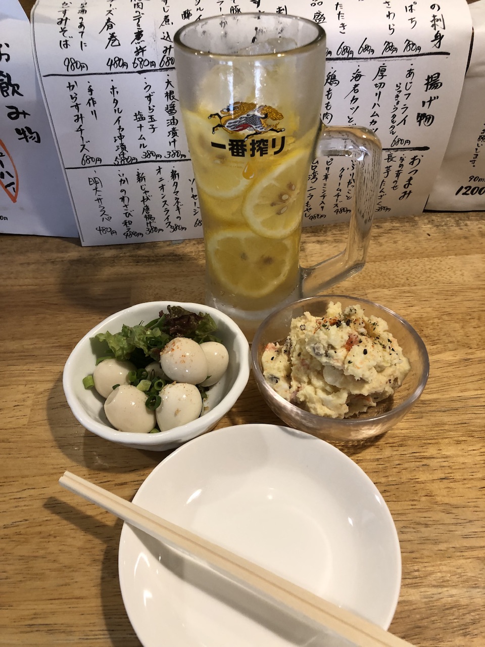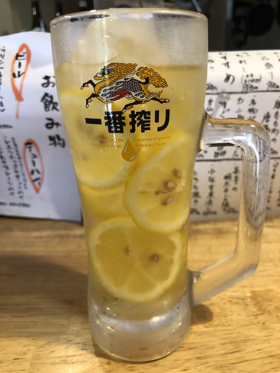 あの時は寒くて熱燗だったけど、今日はハイボール。
