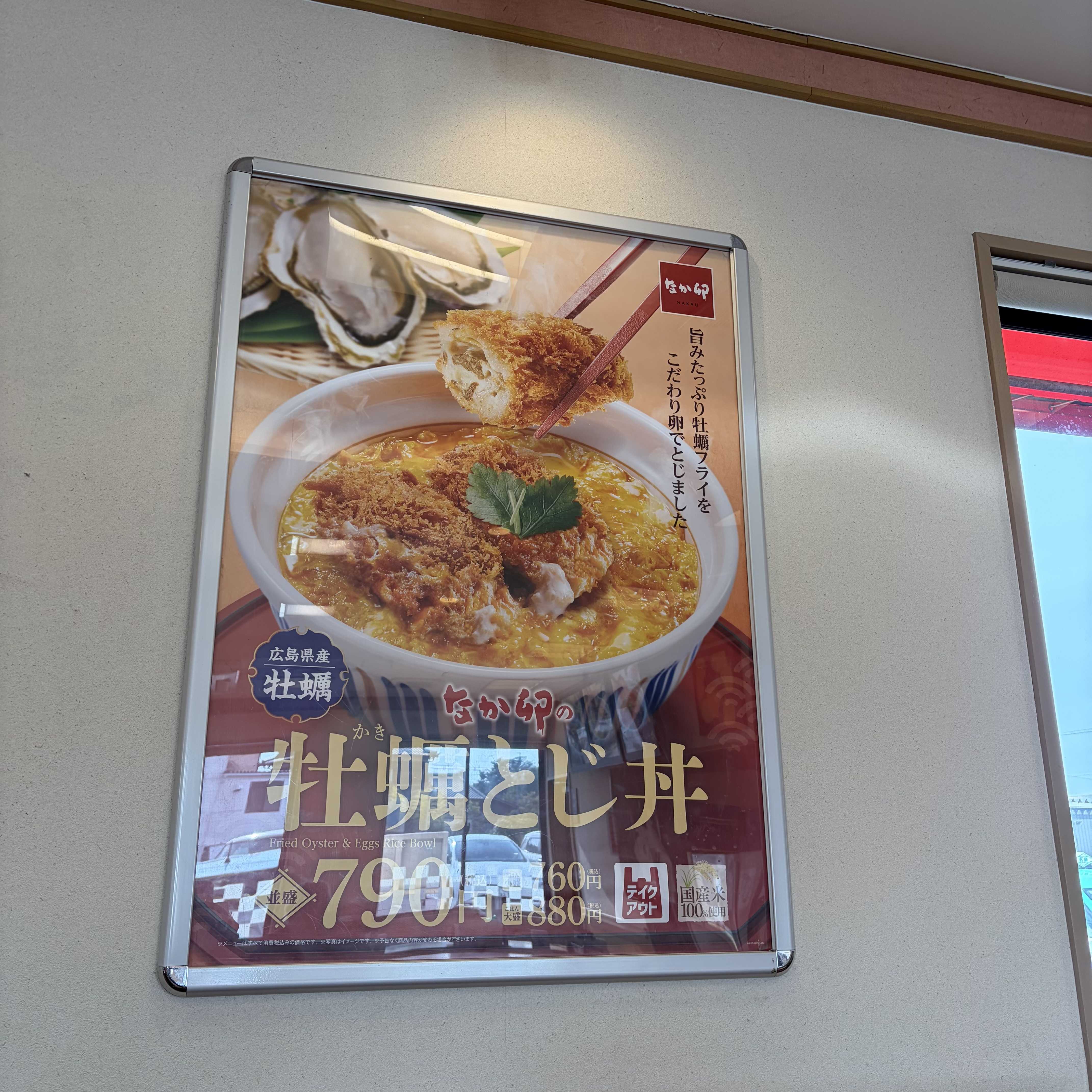 なか卯に親子丼を食べに来たら、こんな限定メニューが。券売機で、温泉卵を追加した事は覚えてますが、何故か、最初から生卵も付いてました。まあ、蛋白質は大歓迎ですから良いのですが、券売機で、何処をタッチして卵が二つになったのか?もう一度、確認したいところですが、カキフライは、ソースで食べるのが一番だと思いましたので、このメニューをもう一度食べる事はないでしょう。久しぶりに、63.5キロ以下になりました。
