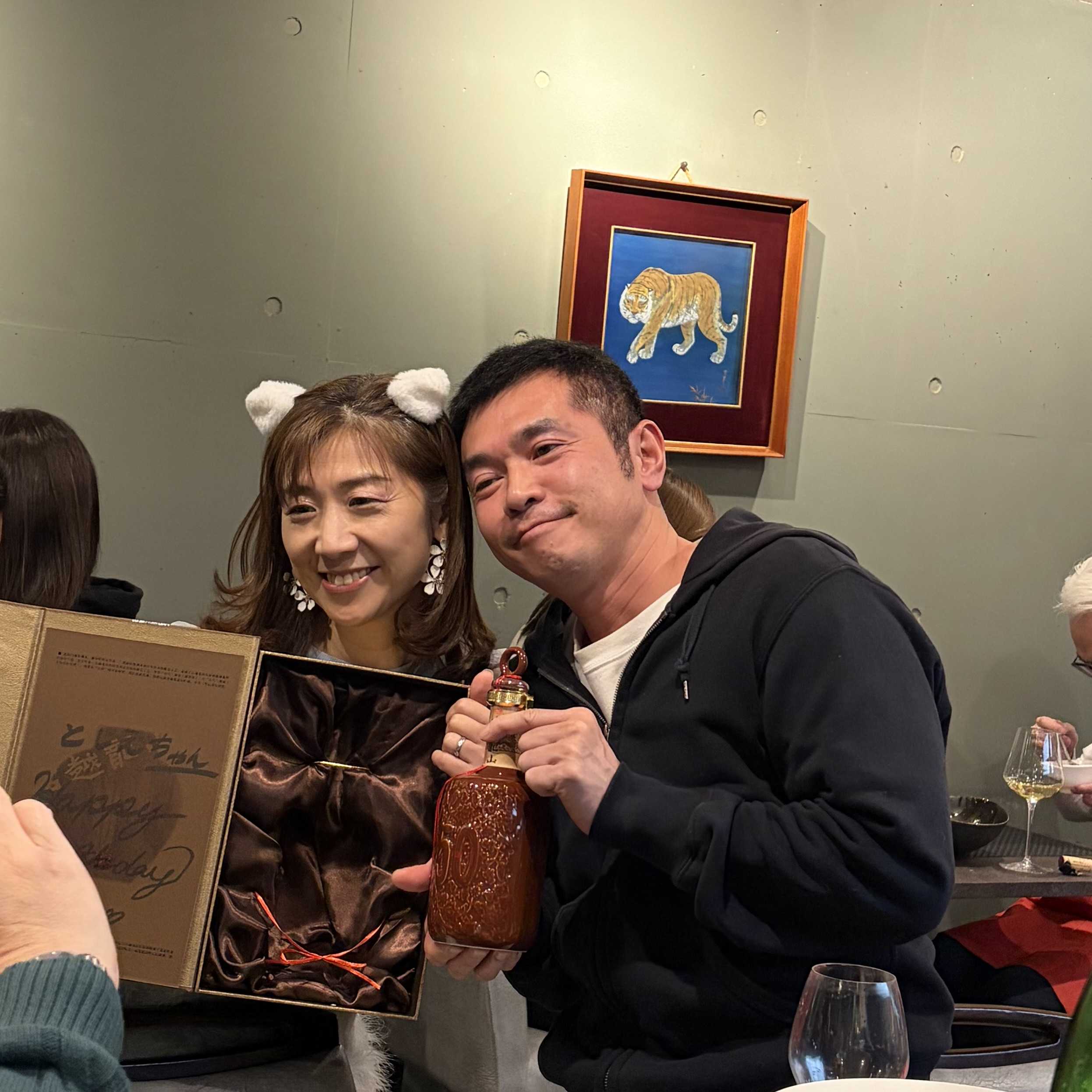 ころたん夫妻が50歳に成りました。店主から50年物の紹興酒がプレゼント。小菜一碟の店主は42歳の誕生日当日でのお祝い。おじいさん夫婦から、バラの花一輪を。ここは、明るい町中華。何を喰っても旨い。旨いし楽しい。時間を忘れちゃう。スタッフも明るく親切。四川飯店で10年修行した麻婆豆腐は必食です。シンガポールの麻婆豆腐専門店でも1年修行。名古屋で開店してくれてありがとうございます。担々麺も最高。誕生日おめでとうございます。来年もお祝いしたいな。こんだけ食べれば太るわな。