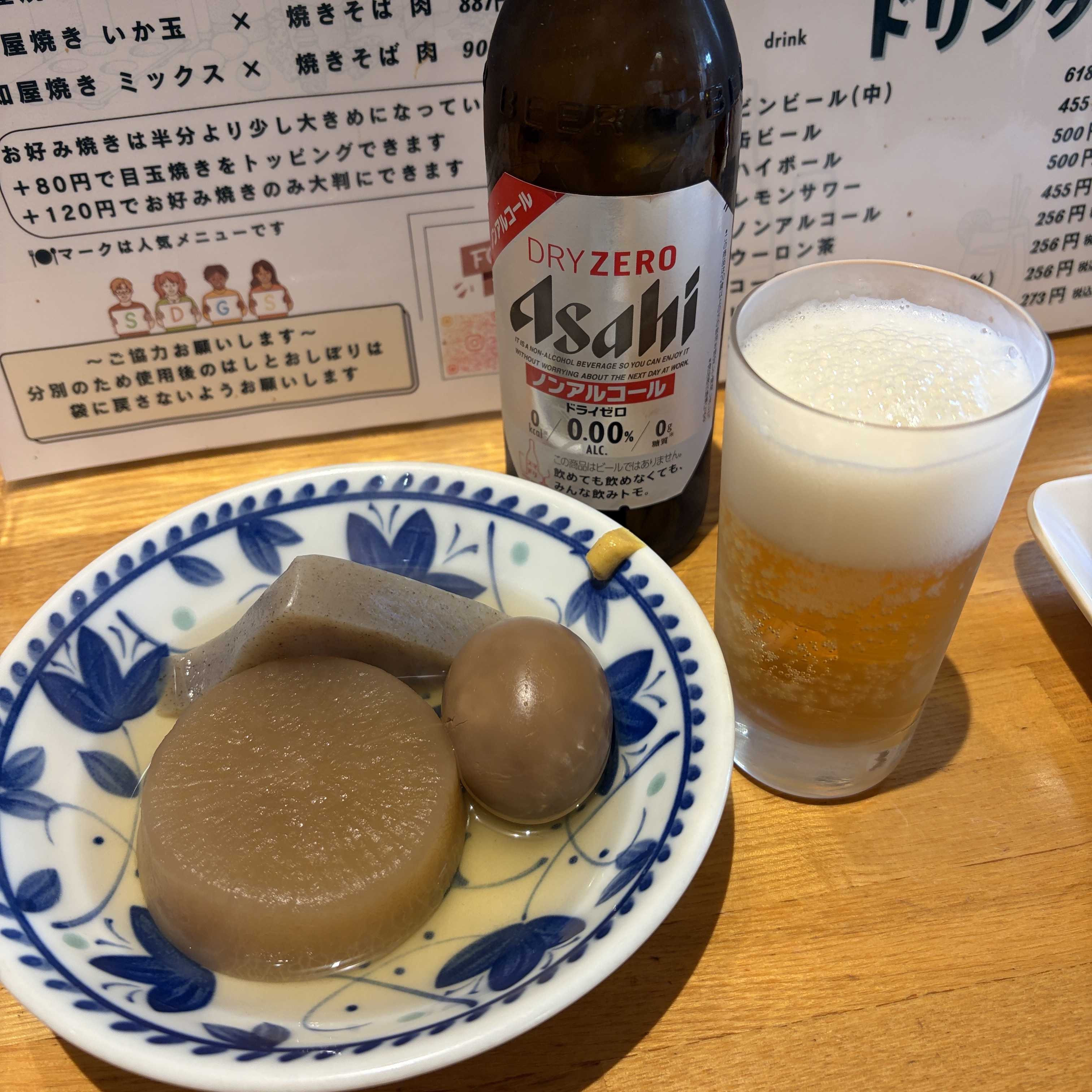奥さんが体調を崩し、食べられるものがお好み焼きだというので、夫婦のお好み焼きのソウルフードが西尾の高知屋さんのお好み焼きなんで買いに行きました。お好み焼きが焼ける迄ね。大根、しゅみしゅみで旨いけど、卵はちょっと染まり過ぎ。あっ、ここも碧南の大磯屋の熟成麺を使っていたんだ。50年以上前から来てるのに知らなかったです。まあ、滅多に焼きそば食べんしな~高知屋さんのお好み焼きはふわふわしたタイプではなく、もっちり、ねっちり、お餅みたいな生地が特徴です。ウスターソースがよく合うんです。夕飯時に成ったら、たこ焼きも食べてみたい。みたらし団子も食べたい。と。え~~、そんな糖質ばっか摂取しては、かえって体に良くないよ。消化だって悪いし。と思いつつも、そんなことは面と向かってよう言わんから黙って買ってきました。結局、たこ焼きは一個、団子は三粒食べて、残りはおじさんが食べました。次の日の夜は、餅が食べたいと・・・。餅なら唐墨餅で、おじいさんも日本酒のアテになります。唐墨餅、旨いな~~~糖質は麻薬だな~~