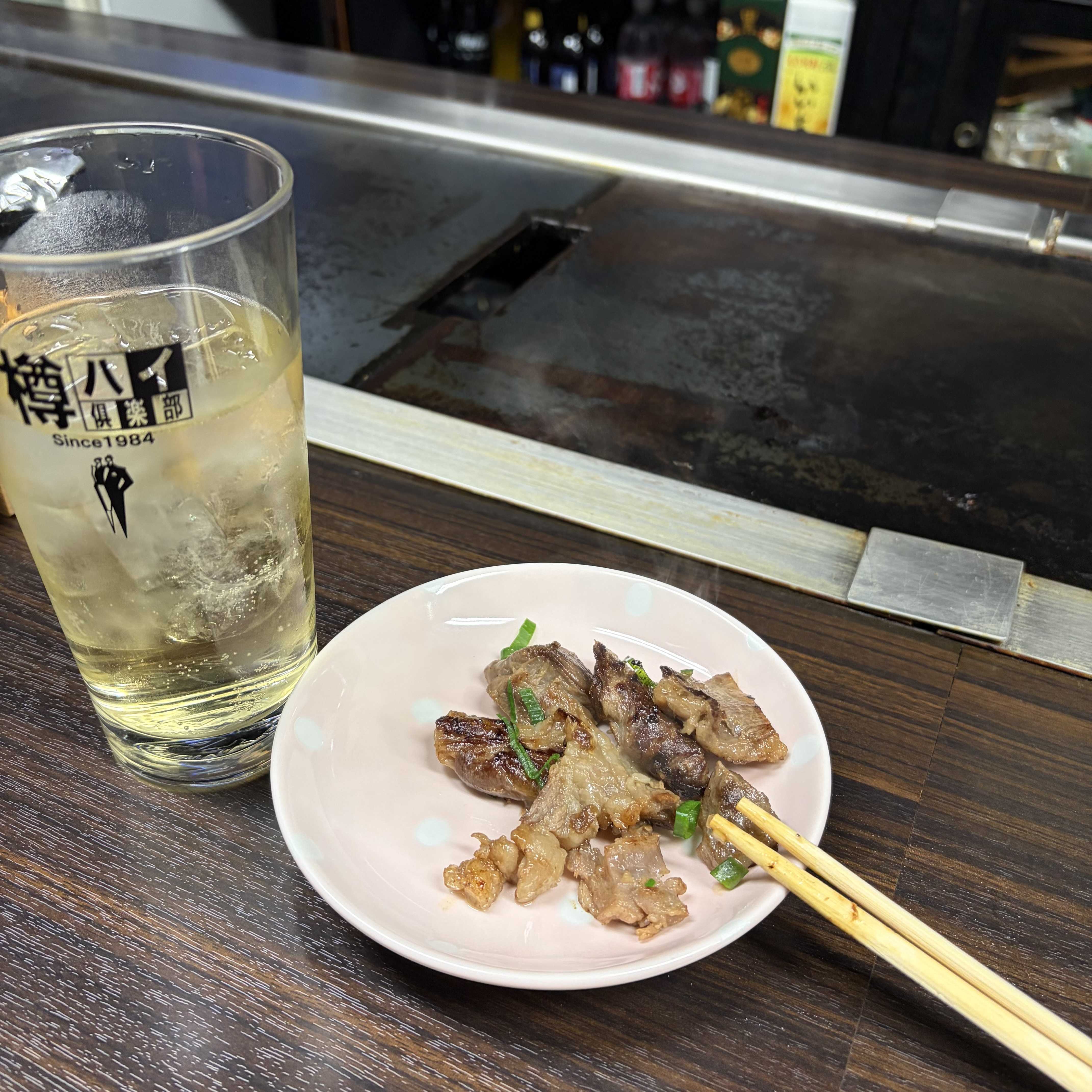 「間」で美味しい和食を頂いたあと、しんのすけさんが連れて来てくれたのは、花見小路のビルとビルの間の一間幅の路地を入ったところに在るお店。スナックのカウンターを鉄板焼きにしたようなお店。大先輩のお姉さんがお二人で営んでます。玄人好みというか、一見はビビッて入れない雰囲気です。ねぎ焼きが売り。遠目にも美味しそうな色合いです。ペタンコですが、ふわふわ。粉もんですが、ふわふわの軽いねぎ焼き、罪悪感が少なくて食べられました。このあと、ワインバーにも連れてってくれましたが、酔っぱらいで写真撮り忘れ。目が覚めれば、ホテルのベッドの中。服は着たまま。メガネが体で押しつぶされてました。夜、自宅に帰る新幹線の時間を気にしていては楽しめない京都の夜でした。