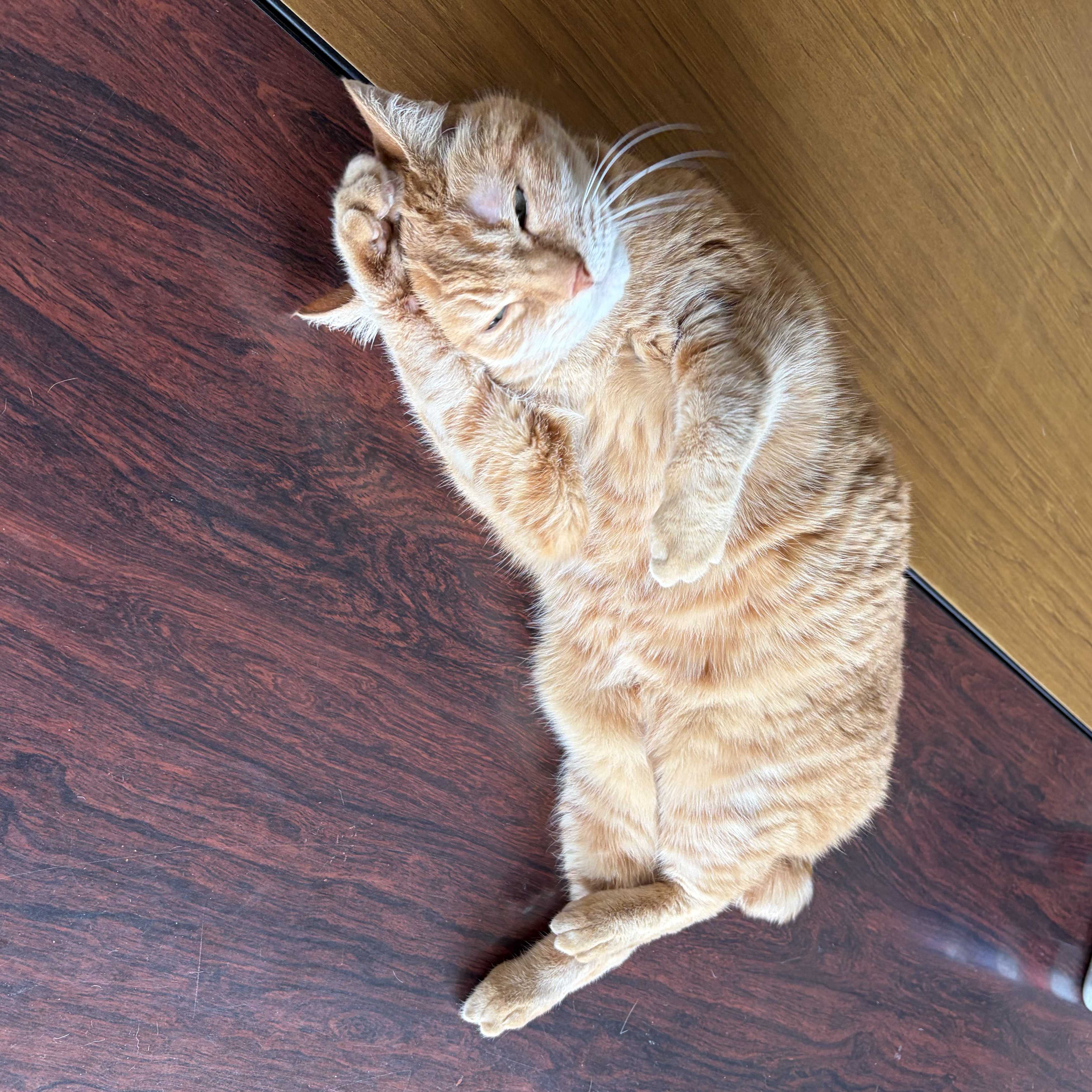 足が逆だけど、イヤミの「シェ~~~」に似てませんか?おじさんが仕事場で飼ってる猫のキィ~ちゃん、15歳くらい。可愛いんです。