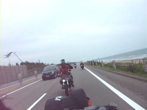 先日、紀伊半島を1周してきたツーリングのネタはすぐに書いたのに、実は7月に行ってきた能登半島1周ツーのネタは、ここまであっためてしまいました。。。orzというか、書いた気になっていて紀伊半島を書いてる最中に「あれ?能登ってどう書いたっけ?」となり、書いてないことに気付いた、という状態です。もはや7月の話なのでよく覚えておらず、なんで書いておかなかったのか!?と悔やむことしきりですが、来年とかに見て「あー、そういえばそうだったな~」となれるように今からがんばって残しておく必要が、是が非でもあるなと思います。- * - * - * - * - * - * - * - * -というわけで、7月の11日/12日の2日間で、能登半島を1周してきました。メンバーは、紀伊半島と同じ私とGSX-R1000K5およびYZF-R6のダチと2人。これはいつものメンバー。それと、近場ツーには一緒にいくメンバーのBUELL、XB-12Scg乗りのダチを追加し計4人でGO。石川県に行くこと自体は、実は初めてではなく、K5のダチがバイク買ったばかりのころに初キャンプツーということで行ったことがあります。当然、なぎさドライブウェイなどは行ったことがあり、なかなか楽しかった覚えがありました。しかし、当時はまだ高速1000円なんてこともなかったため、長野までは高速、そこからは長野の山中を抜けて富山へ。富山からもしばらく下道で、最後に少し高速、といったハチャメチャなコース。今回は「半島制覇」の目標をかかげ、現地まで高速1000円ですっ飛び、1周をグルリと1泊2日でやっちまおうという企画でした。集合は、毎度おなじみの関越下り高坂SA6:30。埼玉のウチからは関越沿線は楽な集合場所です。たいてい伊豆のダチは前の日の晩にウチに泊まりにきます。この日も前日に来ており、一緒に高坂を目指します。到着すると既にR6のダチは到着済み。XB12scgのダチは毎度遅刻気味です。まあ、この後早くついたメンバーは大抵メシ喰って待ってますので、予定的といいますか。軽~く朝ごはんを済ませ待っているところに、XB12Scgのダチ到着。4人そろったので、まず給油して足並みをそろえGO!といった矢先に事件が。。。R6のダチがなんかモゾモゾやってます。。。で、オモムロに一言。「ETCが反応しない!」Σ(゚Д゚;エー!見ると、通常カードが入ってれば緑色になる部分が赤のまま。高速入り口では引っかからず入れているので、ここまでの道のりで壊れたことになります。カードの出し入れをしてみますが直らず、別のカードを入れると、なんと直った!!ICチップがダメになったのかどうかわかりませんが、どうやらETC本体ではなくカード側に問題が出たようです。まあ、走らないわけにもいかず、原因もわかり、ETCカードも2枚持っていたため出口でなんとかなるでしょうとひとまず第一目的地(給油地)の松代SAを目指すことに。結局、出発したのはAM7:00を過ぎたころでしたwこれはまあ、いつものことですね。とにかく高速道路を4台編成で淡々と走ります。高速は混んでるとも空いてるともいえないくらいの混雑具合。。。松代には8:40ごろ到着です。ここは、上信越の新潟方面最終給油地であるため、キョリがどうなっていようがひとまずガソリンを入れておかねばなりません。・・・、という、給油のみの休憩のつもりでしたが、7月頭の早朝、碓井軽井沢から東部湯の丸付近まで、、、激寒です!!(;´Д`)体が冷え、オシリが早くも痛くなり始め、カッパの無い雨天走行に近いキツさを味わいながら、徐々に標高も下がってきて気温が戻り始めたころにやっと更埴JCTです。その後、チョロっと走ると松代到着。松代では既に結構暖かい(というか暑くなり始めてる)くらいでしたが、いや~、7月頭なんてまだまだ夏とはいえないですね。。。あまりの寒さに体力を奪われすぎたため、給油だけしてすぐにGOする予定が、思い切り休憩してしまいました。。。30分くらい休んで、9:15くらいには給油して再出発。ここからは、富山あたりのSAまで再び高速のみで移動。これもまた、給油休憩です。、、、が、途中妙高を過ぎたあたりですかね。新井を過ぎたあたりでしょうか。雨が、、、パラっと。まあ、カッパ着るほどじゃないなってことで走り続けたのですが、北陸道に入ったころには雨は無いものの道路はビショビショ。どうやらちょっと前に降ったなこれは?という状態。30分休憩したのが吉と出たようで、幸いその後強い雨には当たらず、富山入りしたころには道路も乾いてきました。クネクネの不親知IC付近を過ぎると、一気に開けた糸魚川あたりの湾岸のような直線を味わい、色々なツーリング団体とすれ違いながら到着したのが有磯海SA。ここで早くも2度目の給油です。車の方からすると、「なんか休んでばっかやね」という印象を受けそうですが、私たちのバイクは大体15~17Lくらいのガソリンでマンタンですので、リッター20km走れれば300km以上走れるハズなのですがなかなかそうもいかないこともあり、ガソリンメーターなどついてないので突然止まっちゃうの