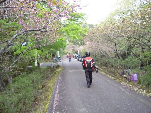 その1より。。。千葉に到着すると、もう15時前。キャンプ場のチェックインは17時までというタイムリミットがあります。ここからゆっくりと千葉の海岸線を走って~、などとしていると間に合いそうもないので、長狭街道を使って一気に鴨川へ抜けます。長狭街道は、軽い峠道と田舎の農道の組み合わせといったカンジの、生活道路という雰囲気です。今回のツーでは、鎌倉までも、三崎までも、キャンプ場までも、山らしい場所をちっとも走っていないので、なんとなく物足りない雰囲気を味わいつつも、時間には勝てないということでガンガン走ります。そんなこんなで、今回の宿泊先「内浦山県民の森」キャンプ場に到着したのが、大体16時。1時間くらいかかったでしょうか。このキャンプ場、使用料金がサイト料の600円のみ!というところがかなり魅力的で決めたのですが、いくつか厄介なところがあります。まず第一に、オートサイトではないので、バイクは500mくらい離れた場所におかなければなりません。荷物をおろしたりつんだりするときは、サイト側のトイレ前にあるスペースに停めて行っていいのですが、基本的には駐車場にバイクを止めなければならないので、朝晩1回づつ、バイクを置きに行き、取りに行かなければなりません。次に、バイクは第2キャンプ場という公園の上部にあるサイトですが、第2キャンプ場は2箇所に分かれています。このとき、奥のサイトに割り当てられると、荷物を降ろすトイレの場所から荷物を持って下りて、サイトをひとつ抜け、さらに階段を上ってたどり着くといったカンジです。キャンプツーリングとはいえ、そこそこ重さがある荷物ですので、コレが結構キツいですね~。更に、受付のオバハンの対応というか、態度というか、メチャクチャ悪いです。県民の森、というので、もしかしたらお役所管轄なのかもしれませんが、少なくとも今まで行ったキャンプ場で、「アウトドアの場を提供する側」の人間で、こんなに態度や話し方が気に障る人が居たのは初めてでした。予約の時から既にイヤな対応だったので、気になってはいたのですが、会ってもイメージのまんまでした。こういうオバハンと話すだけで、かなり損した気になります。。。このオバハンとは別に、男性の方が応対してくれる場合もあったのですが、超対象的にこちらの方はすごく丁寧でした。この方は質問に対しての対応も非常によく、こちらが恐縮してしまうくらいでした。ちょっとバランスとればいいのに。。。(;´Д`)つか、働きたくないなら辞めて欲しいです。そんなこんなで、荷物をサイトに降ろしてテントを設営した後、鴨川のジャスコまで買出しに。片道8~10kmくらいでしょうかね?ただ、信号が少ないのでスイスイ進み、距離よりも時間がかかりませんでした。今晩の仕入れが終わったので管理棟にあるお風呂に入りに行きます。同じ敷地内にお風呂があるっていうのは、キャンプしているときありがたいもんですね~。しかもほどほどの広さがあり、同時に6~7人洗えるくらいの水道数があります。風呂を終えると歩いてサイトまで戻り、宴会です。キャンプツーリングだと過去は大体、レンタルのBBQセットを借りてお肉を買出しに行き、BBQで酒盛り!というパターンだったのですが、コッヘルやストーブを一人1個持ってる状況で、これはちょっとムダが多いかな?ということで、お肉などは焼くけど、コッヘルのフライパンで焼き、酒盛りをして、最後はインスタントラーメンでシメにしようということに。去年の和歌山・潮岬ではレンタルなどできなかったのでそんなカンジでやってみたのですが、道具をフル活用できて楽しいっていうのと、レンタルした道具を今回のサイトまで運ぶのがキツイというところから、今回もこのパターンでwしかし折からのおかしな気候のせいで、5月を目前とした時期とは思えないくらいどんどん気温は下がっていき、防寒装備がないとゴハン食ってられないくらいの寒さに!!普段はお酒を飲むと体温が上がって鬱陶しいくらいなので、ここぞとばかりにお酒を燃料代わりに体にどんどん投入しますが、ヘンに酔っ払った状態になるだけで、体温はちっとも上がりません。。。とはいえ、ウマいメシを木々に囲まれたところで酒飲みながらいただけるっていうのは、やっぱサイコーですよね。昼間のフェリーや今回のコースの話、バイクについての話、その他日頃のくだらないことなども徒然と話しますが、気付けば22時。。。キャンプの夜は早いです。今朝は5時起きしてるし、寒さもどんどん厳しくなってきたので、ここらでお開き。テントに戻るや否や、インナーに長袖のシャツを1枚追加、ジャージの上にはバイクのカッパズボンをはいて、ジャンバーも着たままでシュラフにイン。このくらいしないとキツイくらい寒かったです。でもまあ、お酒の力もあり、早起きの力もあり、このくらいの装備であればモンベル#7のダウンハガーでグーグー寝られましたがw翌