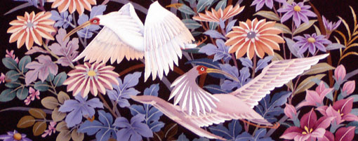 「見たことがない鳥」というタイトルで朱鷺の飛んでいるのを実際に見たことがない、と文書にしたが、35年に及ぶ染色生活の中で朱鷺の模様を一度も描かなかったわけではない(^^ゞ描いた時点で想像をめぐらせて纏め上げるのだが、飛んでいるのを見たことが無いために私の気持ちの中で確信を持てない部分が残ったまま、という意味だった。では、見たことのある鳥ならば確信を持てるのか?と問われれば・・・それも返事に窮する(笑写真は15年ほど前だろうか。朱鷺の黒留袖を練習した見本布の一部。今はパソコン上のCGで色付けを試すが、当時は色のイメージをまとめるために(特に黒留袖などは気を遣って)実際に生地の上で練習をした。・・・この部分だけでも3日以上費やしたと思う。練習と悩む時間が膨大だった(--;着物の模様を組み込む場合、花や鳥の大きさは便宜的に都合よく調節することになる。模様だからというわけでもないが、図案化して何でも組み込むことともできるという良さもある。意匠として留袖の格式を出すことができるか?ということが課題だった。今・・・少なくとも15年前より内容のある仕事をせねば!・・・?(笑)いや、笑っている場合ではないって(^^;▼能登の手の日々 カテゴリー●全て ●日々 ●染色 ●能登、そして、この町 ●絵・美術について ●CG ●食べもの ▼フリーページ ・・・編集中▼リンク●ようこそNotoNote オリジナルのデザイン・あつらえの着物。染色・草木染めの専門ページです。 ▼お気に入り ブログ・その他●Water-Colour ひろろdecさん●日々を綴る ハナママ3さん●紅の水絵日記 M-Crimsonさん●MoMo太郎日記 MoMo太郎009さん●Kleine Erfrischung kamoppieさん●考え事ほか vissel-篤胤さん●地元力向上委員会 hanami73さん●今日の空 つるまる5さん●Que sera sera 五右衛門0563さん●染工房えむ koubou-mさん●バンブーおじさん奮闘記 幸達さん●てんてん日記 もえぎさん▲順次に追加編集