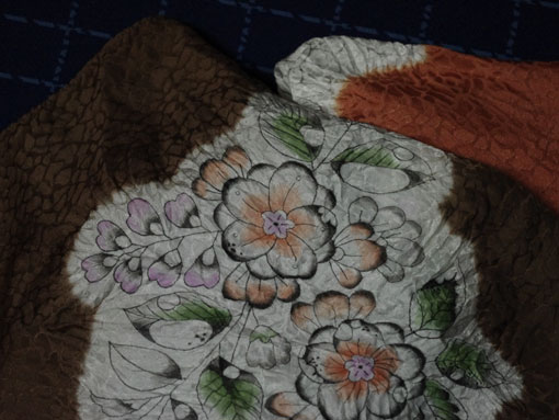 久しぶりに辻が花の模様を描く。「辻が花」は、室町時代中ごろから江戸時代初期までの間に染められた絞り染の模様の呼称。江戸時代には消えてしまった模様ということで、昭和の末期に復元や創作がされ「幻の染め」と言われていた。が、この「幻」というのは呉服業界の販売のためのキャッチフレーズという感じもあって、染め仕事の中では幻と言うより現実に可能な技法だったので仕事仲間同士では笑えた(^^ゞ手描きと手絞りの複合技法なので、両方とも、それなりの技術は必要だろうけど・・・「幻」というだけあって、その名称の由来も諸説あり、これは確かに幻だった(^^ゞ久しぶりにカチン(墨の線描)を行うと、ちょっとビビル。手が震える?ボカシの色がキレイにならないのを生地の凹凸のせいにする?(笑模様の中に顔料絵の具でボカシを入れて手絞りをして、あえて室町時代と同じように天然の色と自然水で染を行う。・・・化学染料ならば簡単なのだが・・・草木染めで失敗すると、本当に『幻の染め』になるかもしれない・・・(^^;▼能登の手の日々 カテゴリー ●全て●日々 ●街中ギャラリー ●染色 ●能登、そして、この町 ●絵・美術について ●CG ●食べもの▼能登の手の作品集(写真・CG) ▼リンク ●ようこそNotoNote オリジナルのデザイン・あつらえの着物。染色・草木染めの専門ページです。 ▼お気に入り ブログ・その他 ●Water-Colour ひろろdecさん ●日々を綴る ハナママ3さん ●紅の水絵日記 M-Crimsonさん ●MoMo太郎日記 MoMo太郎009さん ●Kleine Erfrischung kamoppieさん ●考え事ほか vissel-篤胤さん ●地元力向上委員会 hanami73さん ●今日の空 つるまる5さん ●Que sera sera 五右衛門0563さん ●染工房えむ koubou-mさん ●バンブーおじさん奮闘記 幸達さん ●てんてん日記 もえぎさん★メールはこちら ★能登の手へのメッセージはこちら