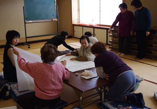 秋に金沢で展示の予定があるので草木染め教室のメンバーは、皆で集まって色々と染める布を広げたり図案を検討しはじめた(^^どういった活動でも目標や目的があると進むことができる。皆が無理なく無駄の無い進め方をしたいものだ。12年以上も続いている間には、教える私が無理な図案を描いたり難しい工程を出したこともある。それでも皆さんはセッセと染めてきてくれた(^^ゞ草木染めの絞りの染め重ねは、この教室全員で改良を重ねて来たものだった。絞りの理論だけは私も持ち合わせていたが、実は教える私自身は絞りの作業をしたことが無かったのだった。・・・過去形ではなく今も(笑教ええてきたのではなく、私が教わってきた教室だわ(^^平均年齢は、ゆうに70歳を越えている皆さんが頑張るから、教えるほうも頑張らないとね(^^;▼能登の手の日々 カテゴリー ●全て●日々 ●街中ギャラリー ●染色 ●能登、そして、この町 ●絵・美術について ●CG ●食べもの▼能登の手の作品集(写真・CG) ▼リンク ●ようこそNotoNote オリジナルのデザイン・あつらえの着物。染色・草木染めの専門ページです。 ▼お気に入り ブログ・その他 ●Water-Colour ひろろdecさん ●日々を綴る ハナママ3さん ●紅の水絵日記 M-Crimsonさん ●MoMo太郎日記 MoMo太郎009さん ●Kleine Erfrischung kamoppieさん ●考え事ほか vissel-篤胤さん ●地元力向上委員会 hanami73さん ●今日の空 つるまる5さん ●Que sera sera 五右衛門0563さん ●染工房えむ koubou-mさん ●バンブーおじさん奮闘記 幸達さん ●てんてん日記 もえぎさん★メールはこちら ★能登の手へのメッセージはこちら