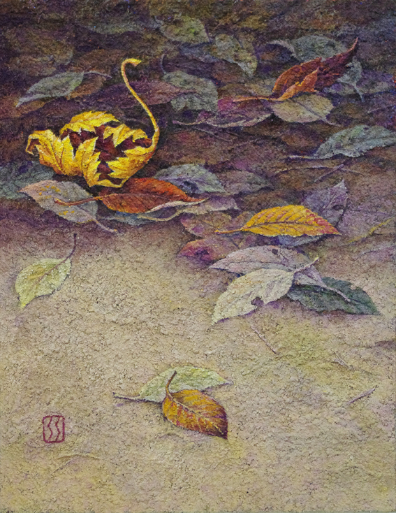 今年も文化祭の日がやってきた。このところ1年に1枚の絵を描いてきたが、今年も1枚だけ描いて出品した。タイトルは、『明日 土に還るから』・・・だから?それで何を、どうするの?って感じ(笑F6号 キャンバスにアクリル絵の具その後に続く言葉は?明日、土に還るから・・・今日は精一杯、頑張ろう。明日、土に還るから・・・今日はお休み。明日、土に還るから・・・静かに、見守っていたい。明日、土に還るから・・・今だけは、泣かせて。明日、土に還るから・・・もう、あきらめよう。明日、土に還るから・・・きっと、いつか、甦る。どれでも良い、と言えば投げやりに聞こえるだろうか?その、どれでも良いし、どれでなくても良いし、他の言葉でも良いし、何も無くても良いし、その時々、違っていても良いような気がする(^^いままでが、色々だったように。色々あって、みんな土に還っていくのだから。そんな想いが色々浮かんでは消えて、明日、土に還るから。30年ほど前に枯葉、落葉のスケッチをして、染色パネルにして、帯に染めて、着物に染めて、CGに描いて、そして今回キャンバスにアクリル絵の具で描いた・・・ん~作品にする順序が変かも?良くわからないけど、葉を描くことが多いのは、あとしばらくで僕も土に還るから(^^ゞ▼能登の手の日々 カテゴリー ●全て ●日々 ●街中ギャラリー ●染色 ●能登、そして、この町 ●絵・美術について ●CG ●食べもの ▼能登の手の作品集 (写真・CG) ▼リンク ●ようこそNotoNote オリジナルのデザイン・あつらえの着物。染色・草木染めの専門ページです。 ▼お気に入り ブログ・その他 ●Water-Colour ひろろdecさん ●紅の水絵日記 M-Crimsonさん ●MoMo太郎日記 MoMo太郎009さん ●Kleine Erfrischung kamoppieさん ●考え事ほか vissel-篤胤さん ●地元力向上委員会 hanami73さん ●今日の空 つるまる5さん ●Que sera sera 五右衛門0563さん ●染工房えむ koubou-mさん ●バンブーおじさん奮闘記 幸達さん ●てんてん日記 もえぎさん染色の専門サイト★能登の手へのメール