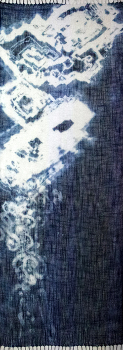 めまいしそうな暑さが続く。何もしないでも汗が流れてくる日々。でも、仕事はしなければならない(^^ゞ藍染めのガーゼストールを多く染めている。汗拭きもできるし大判なので冷房対策にも都合が良い。染めと発色に地下水を使うので夏の作業には適している。 大判ガーゼストールは58×160cm程あるから絞り模様も楽しめる。もう少し実験を試して、身に着けても見ても楽しいストールにしたいと思う。あと2,30枚も染めたら思い通りになるかな(笑)でも暑いので、この夏は無理はしないほうが良いかな~と。時どき体験や見学の依頼があるのだけど、ウチの工房は看板も出していなくて、小売もあまりしていなくてお客さまを迎える準備がなってない(^^; 私は実験や試作ばかりしているし、妻は先日、何かの雑誌の取材をお断りしていたし、体験教室も今年はあまりできなくて他の人にお願いしたし・・・なんとか改善したいのだが、年齢には叶わない。連日の暑さ、お墓の周囲の草刈をしたら草より私が倒れそうになった・・・熱中症には気をつけないとね(^^;▼能登の手の日々 カテゴリー ●全て ●日々 ●街中ギャラリー ●染色 ●能登、そして、この町 ●絵・美術について ●CG ●食べもの ▼能登の手の作品集 (写真・CG) ▼リンク ●ようこそNotoNote オリジナルのデザイン・あつらえの着物。染色・草木染めの専門ページです。 ▼お気に入り ブログ・その他 ●Water-Colour ひろろdecさん ●紅の水絵日記 M-Crimsonさん ●MoMo太郎日記 MoMo太郎009さん ●Kleine Erfrischung kamoppieさん ●考え事ほか vissel-篤胤さん ●地元力向上委員会 hanami73さん ●今日の空 つるまる5さん ●Que sera sera 五右衛門0563さん ●染工房えむ koubou-mさん ●バンブーおじさん奮闘記 幸達さん ●てんてん日記 もえぎさん染色の専門サイト★能登の手へのメール