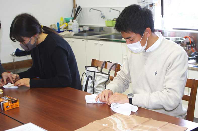 雨の午後、久しぶりにウルシ染め体験のお客様。男女2名・・・草木染め体験において性差別は、全く無い(^^)ウルシ染めの過去新聞記事を見て、その抗菌性に関心を持ってもらったようだ。私が調べたわけではないけど、漆などのフラボン系色素と酢酸系媒染剤によって染色された繊維には、黄色ブドウ球菌や大腸菌に対する抗菌性が報告されている。初めてのウルシ染め、とてもキッチリ丁寧な作業割り箸で板締め絞りアルミ媒染の木綿ハンカチ鉄媒染のヒモ絞りは太細の変化が狙いどおり漆の木の廃材の話、漆掻きのこと、チップの作り方、染料の煮出し方、そしてウルシ染めの方法。質問も沢山出て、気持ちの良い取り組み方でした。私も嬉しくて、時間オーバーで話してしまった(笑)ウルシチップが手に入らない場合・・・ウルシチップの作成と販売も行っています。先ず試し染めをしてみたい方はチップ200g送料込み1,100円で販売しています。ご希望の方はshigunaru16@gmail.comまで。染め方のプリントも同封します。チップ200gで繊維200g以上染めることが出来ます。▼能登の手の日々 カテゴリー ●全て ●日々 ●街中ギャラリー ●染色 ●能登、そして、この町 ●絵・美術について ●CG ●食べもの ▼能登の手の作品集 (写真・CG) ▼リンク ●ようこそNotoNote オリジナルのデザイン・あつらえの着物。染色・草木染めの専門ページです。 ▼お気に入り ブログ・その他 ●Water-Colour ひろろdecさん ●紅の水絵日記 M-Crimsonさん ●MoMo太郎日記 MoMo太郎009さん ●Kleine Erfrischung kamoppieさん ●考え事ほか vissel-篤胤さん ●地元力向上委員会 hanami73さん ●今日の空 つるまる5さん ●Que sera sera 五右衛門0563さん ●染工房えむ koubou-mさん ●バンブーおじさん奮闘記 幸達さん ●てんてん日記 もえぎさん染色の専門サイト★能登の手へのメール