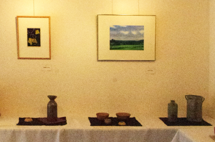 中央のパステル画が榎本さんのアトリエ近景、その下が富来の粘土の器