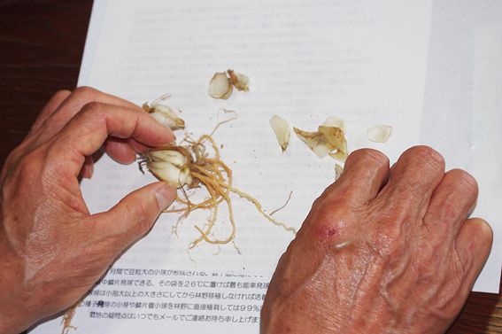 ササユリの花の季節も終わりに近づきましたが、今年も切り花にされてしまったササユリも多かったことでしょう。飾るために数枚の葉と花を切り取られてしまったササユリは、葉による光合成ができなくて球根が育ちません。力のない球根は土中のウィルスに負けて枯れてしまいます。
