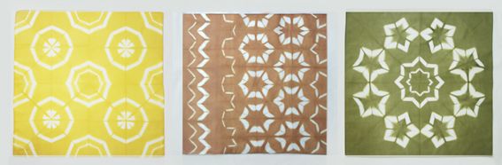 黄色はアルミ媒染、茶色は銅媒染、グレー緑は鉄媒染