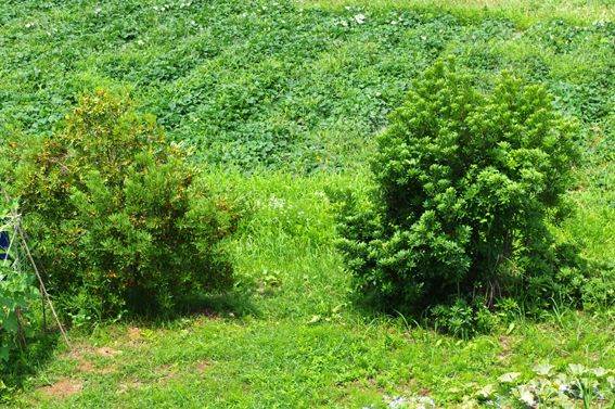 雌の木が2本と右端が雄木、雌の木にだけ実がなる