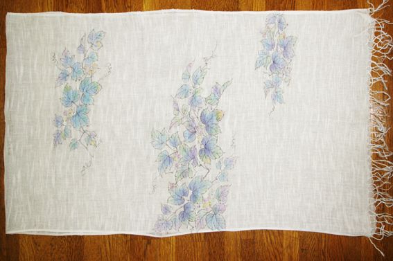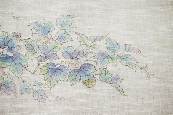 夏布ストール(麻80%綿20%)50㎝×180㎝ 墨線描に彩色