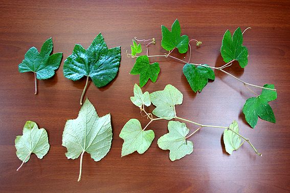 エビヅルは少し厚みがあって丸っこいものが多いが、尖っているものもある