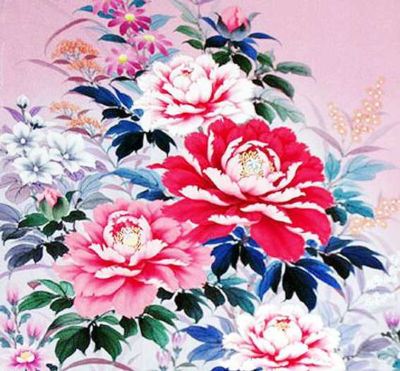 このタイプは地色を変え、花の種類と構図を変えて何枚か作った