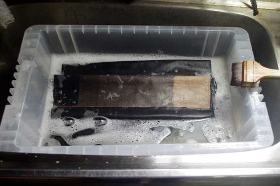 蒸器で熱を30分掛けて発色を促すと銅媒染は茶色に発色する