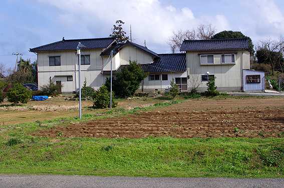 裏道になるが、諸橋公民館と清水の里から見ると我が家の全景が見えて、左側が工房