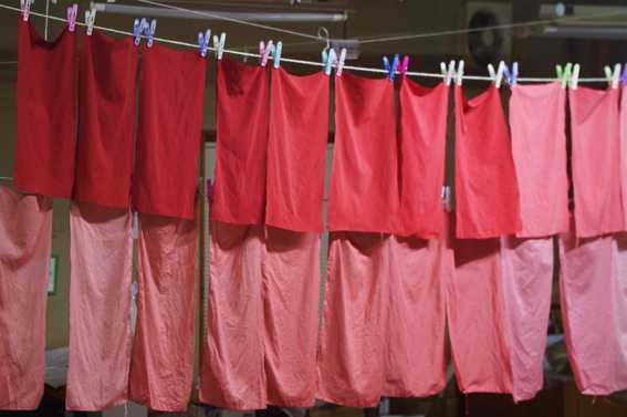 絹は4回目までが濃い赤に染まり、5回目から5回目から急激に薄くなる